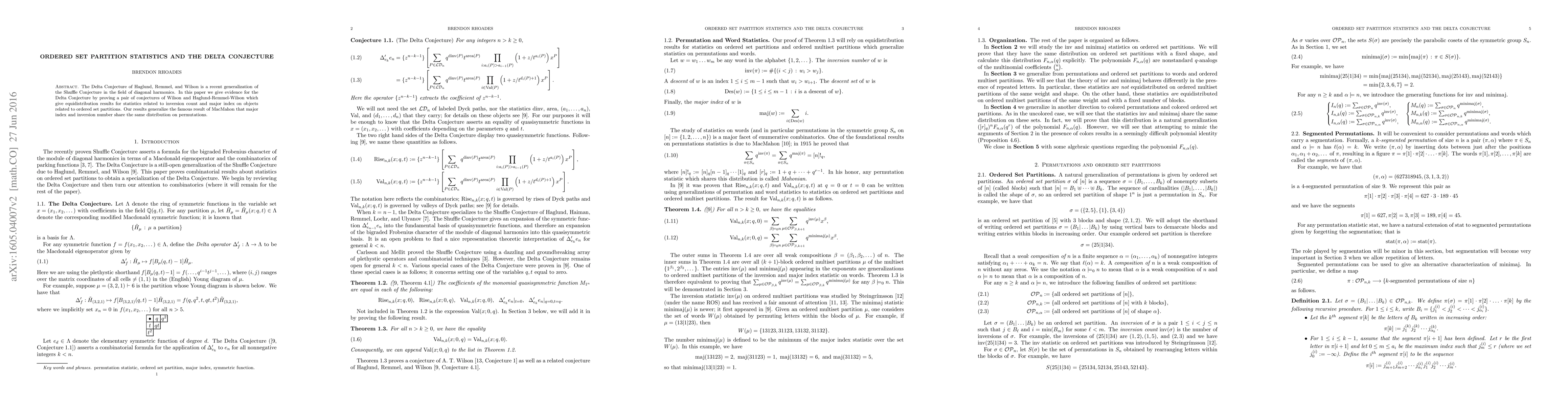 This paper provides evidence for the Delta Conjecture by proving key conjectures related to inversion count and major index in ordered set partitions, generalizing MacMahon's result on permutations.