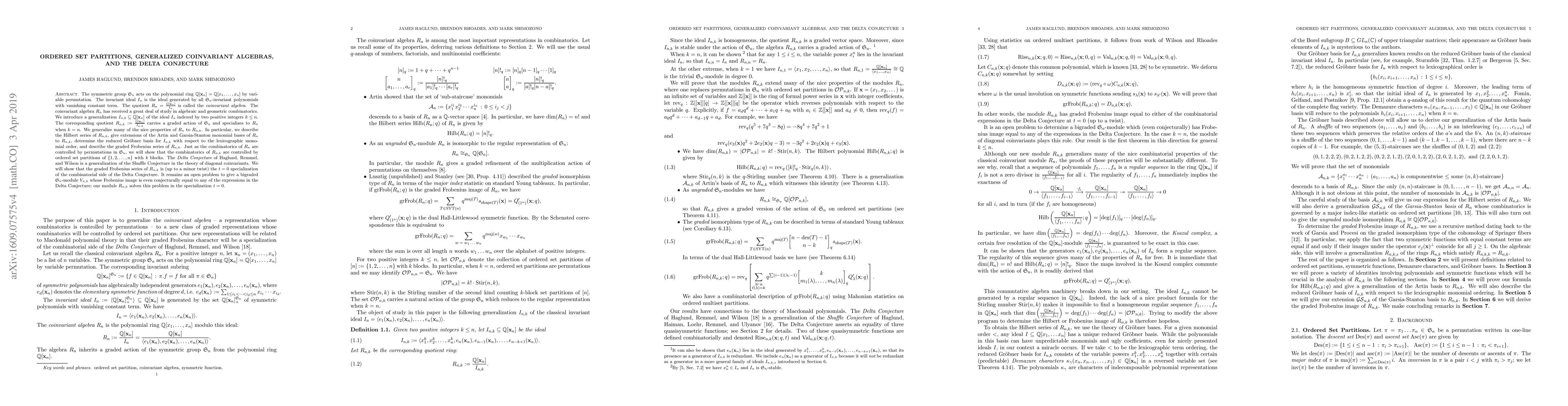 The symmetric group $\mathfrak{S}_n$ acts on the polynomial ring $\mathbb{Q}[\mathbf{x}_n] = \mathbb{Q}[x_1, \dots, x_n]$ by variable permutation. The invariant ideal $I_n$ is the ideal generated by all $\mathfrak{S}_n$-invariant polynomials with vanishing constant term. The quotient $R_n = \frac{\mathbb{Q}[\mathbf{x}_n]}{I_n}$ is called the coinvariant algebra. The coinvariant algebra $R_n$ has received a great deal of study in algebraic and geometric combinatorics. We introduce a generalization $I_{n,k} \subseteq \mathbb{Q}[\mathbf{x}_n]$ of the ideal $I_n$ indexed by two positive integers $k \leq n$. The corresponding quotient $R_{n,k} := \frac{\mathbb{Q}[\mathbf{x}_n]}{I_{n,k}}$ carries a graded action of $\mathfrak{S}_n$ and specializes to $R_n$ when $k = n$. We generalize many of the nice properties of $R_n$ to $R_{n,k}$. In particular, we describe the Hilbert series of $R_{n,k}$, give extensions of the Artin and Garsia-Stanton monomial bases of $R_n$ to $R_{n,k}$, determine the reduced Gr\"obner basis for $I_{n,k}$ with respect to the lexicographic monomial order, and describe the graded Frobenius series of $R_{n,k}$. Just as the combinatorics of $R_n$ are controlled by permutations in $\mathfrak{S}_n$, we will show that the combinatorics of $R_{n,k}$ are controlled by ordered set partitions of $\{1, 2, \dots, n\}$ with $k$ blocks. The {\em Delta Conjecture} of Haglund, Remmel, and Wilson is a generalization of the Shuffle Conjecture in the theory of diagonal coinvariants. We will show that the graded Frobenius series of $R_{n,k}$ is (up to a minor twist) the $t = 0$ specialization of the combinatorial side of the Delta Conjecture. It remains an open problem to give a bigraded $\mathfrak{S}_n$-module $V_{n,k}$ whose Frobenius image is even conjecturally equal to any of the expressions in the Delta Conjecture; our module $R_{n,k}$ solves this problem in the specialization $t = 0$.