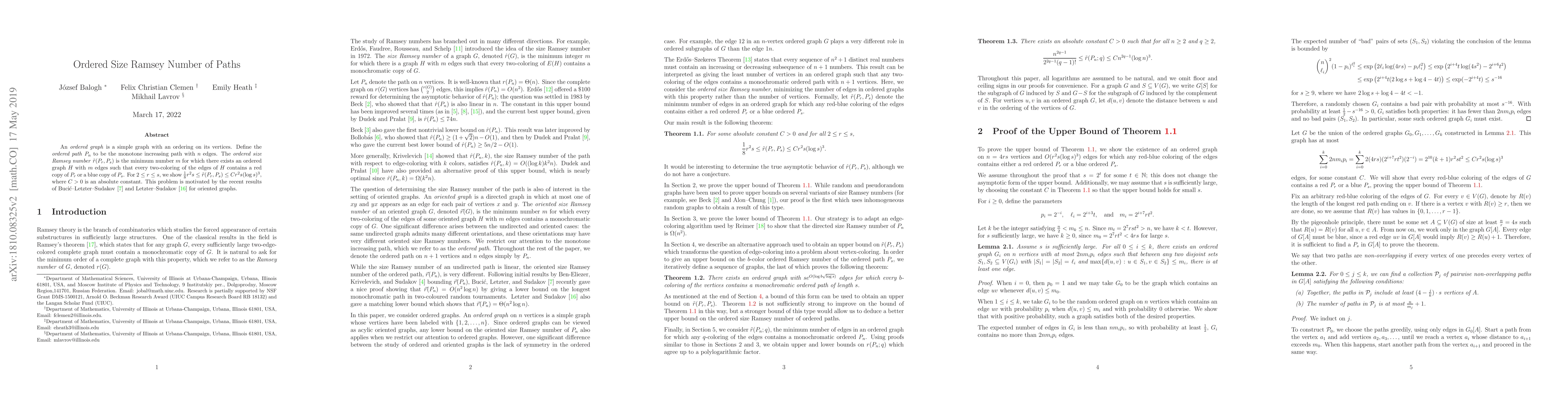 Researchers prove that the minimum number of edges in an ordered graph to contain a specified path under two-coloring is between 1/8r^2s and Cr^2s(log s)^3 for paths r and s of lengths 2 to s.