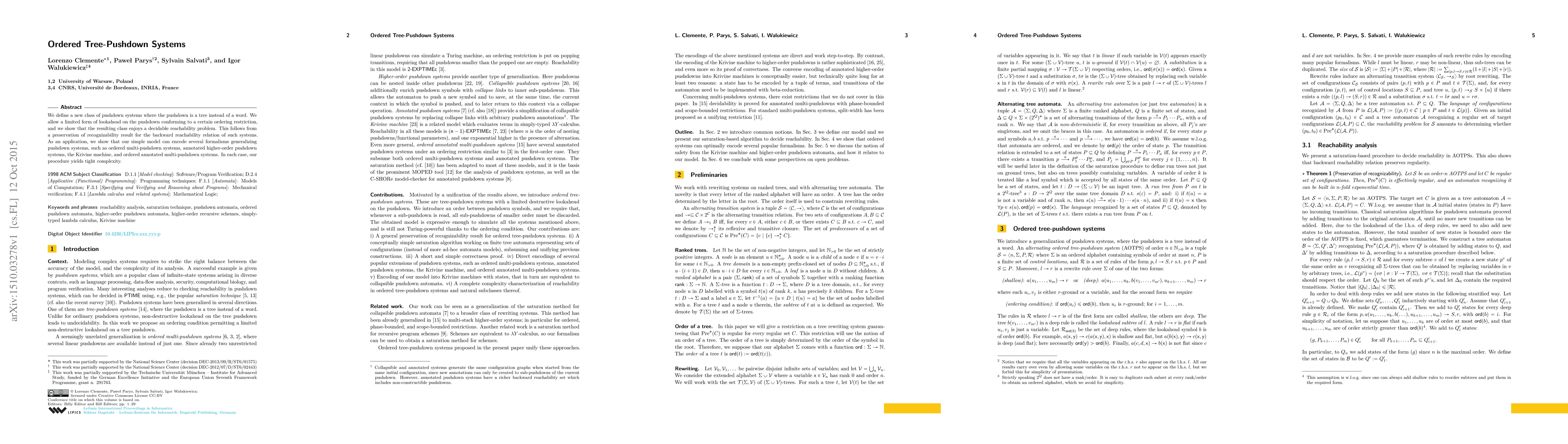 Ordered Tree-Pushdown Systems introduce a novel pushdown model where the stack is a tree rather than a word, allowing limited lookahead under an ordering constraint. The reachability problem for this model is shown to be decidable, and the model is applied to encode several generalized pushdown formalisms with tight complexity results.