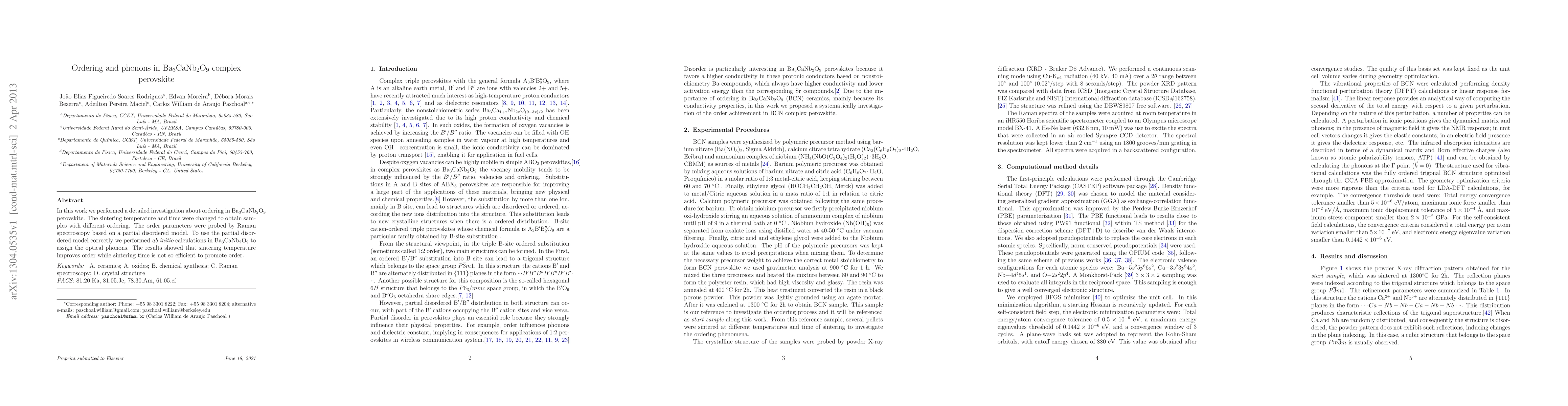 In this work we performed a detailed investigation about ordering in \bcn perovskite. The sintering temperature and time were changed to obtain samples with different ordering. The order parameters were probed by Raman spectroscopy based on a partial disordered model. To use the partial disordered model correctly we performed {\it ab initio} calculations in \bcn to assign the optical phonons. The results showed that sintering temperature improves order while sintering time is not so efficient to promote order.