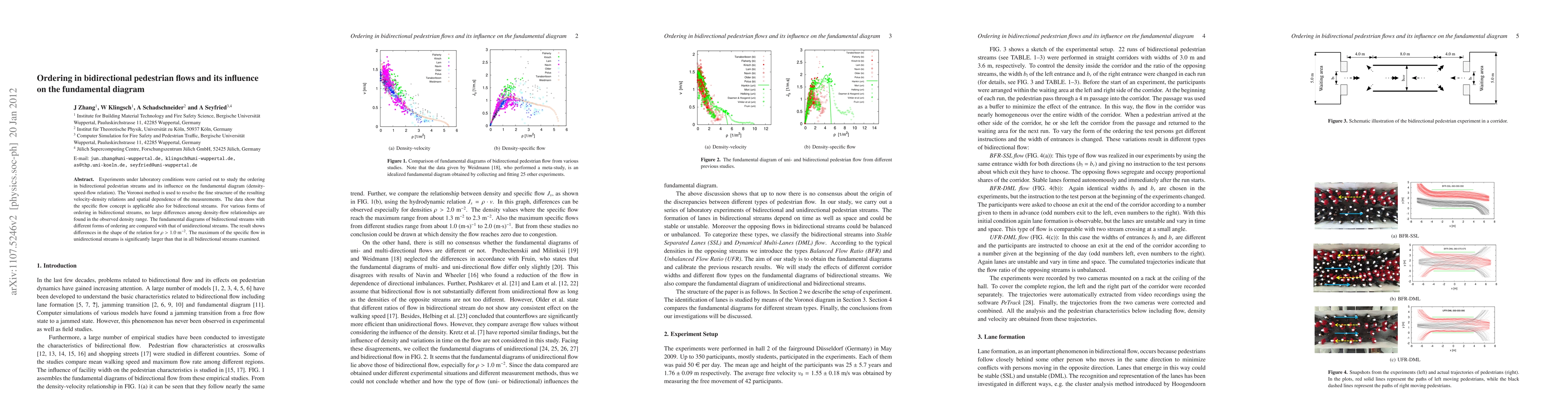 This study investigates the ordering in bidirectional pedestrian flows and its impact on the fundamental diagram, revealing that while various ordering forms in bidirectional streams show no significant differences in density-flow relationships, the fundamental diagram for bidirectional streams differs from unidirectional streams, especially at densities greater than 1.0 m-2, with unidirectional streams having a higher maximum specific flow.