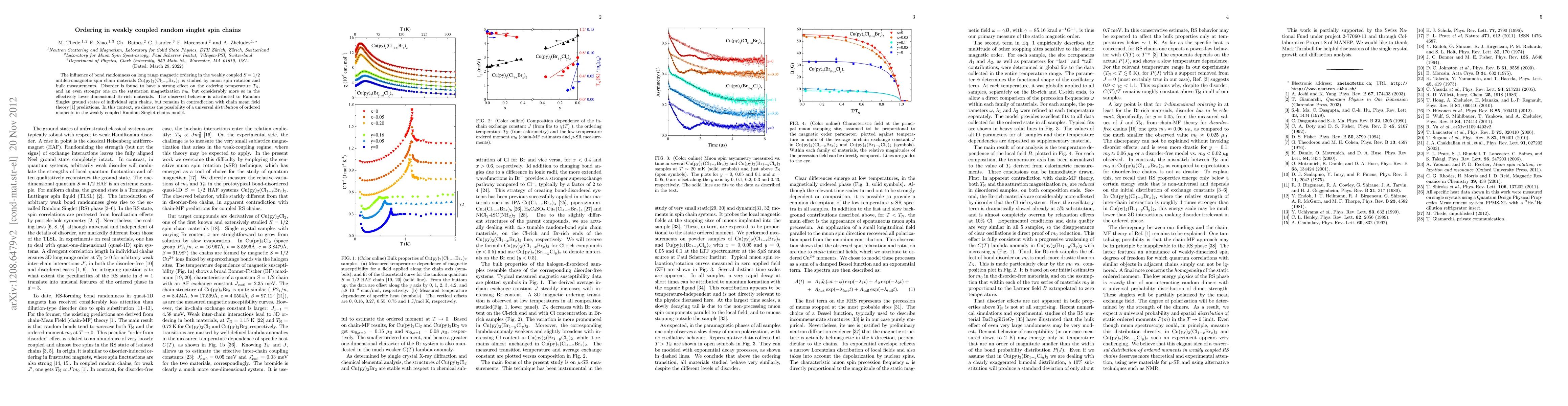 This research investigates how bond randomness affects magnetic ordering in weakly coupled S=1/2 antiferromagnetic spin chains in Cu(py)2(Cl1-xBrx)2 materials, finding that disorder significantly reduces both ordering temperature and saturation magnetization, especially in Br-rich lower-dimensional materials, challenging conventional chain mean field theory.