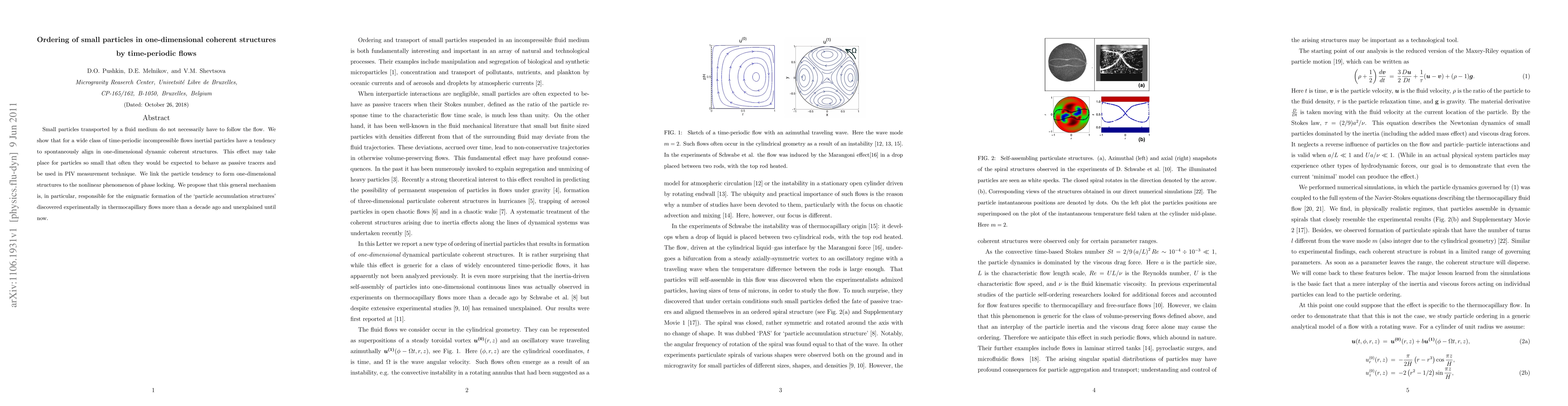 This study demonstrates that small inertial particles in time-periodic flows can spontaneously align into one-dimensional coherent structures, contrary to their passive tracer behavior, due to phase locking phenomena. This mechanism explains the formation of previously enigmatic particle accumulation structures observed in thermocapillary flows.