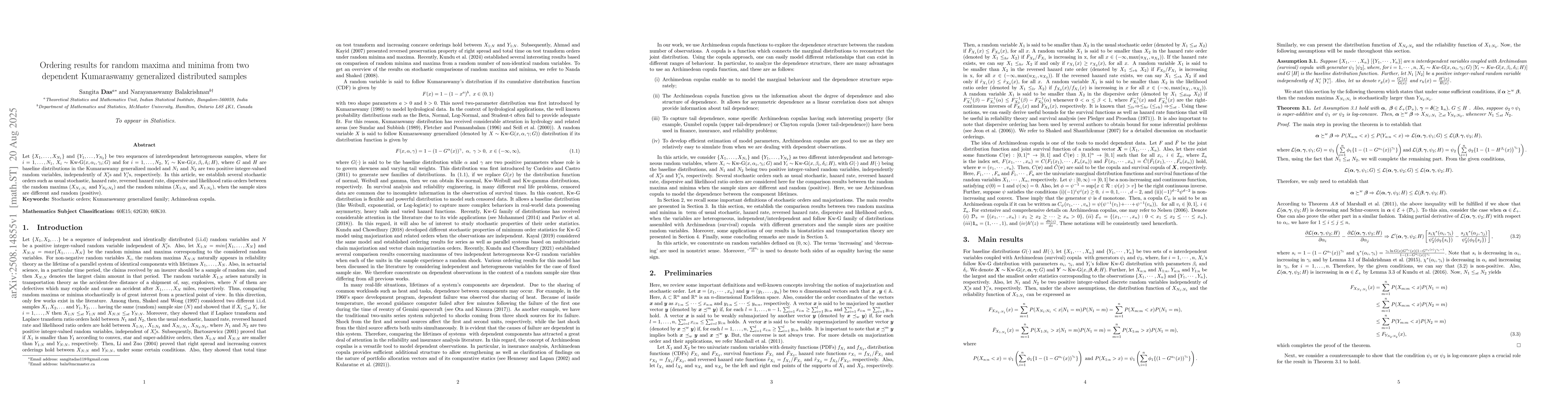 The paper presents a detailed analysis of stochastic orders for random extremes from dependent Kumaraswamy-G distributed variables, utilizing Archimedean copulas to model dependence.