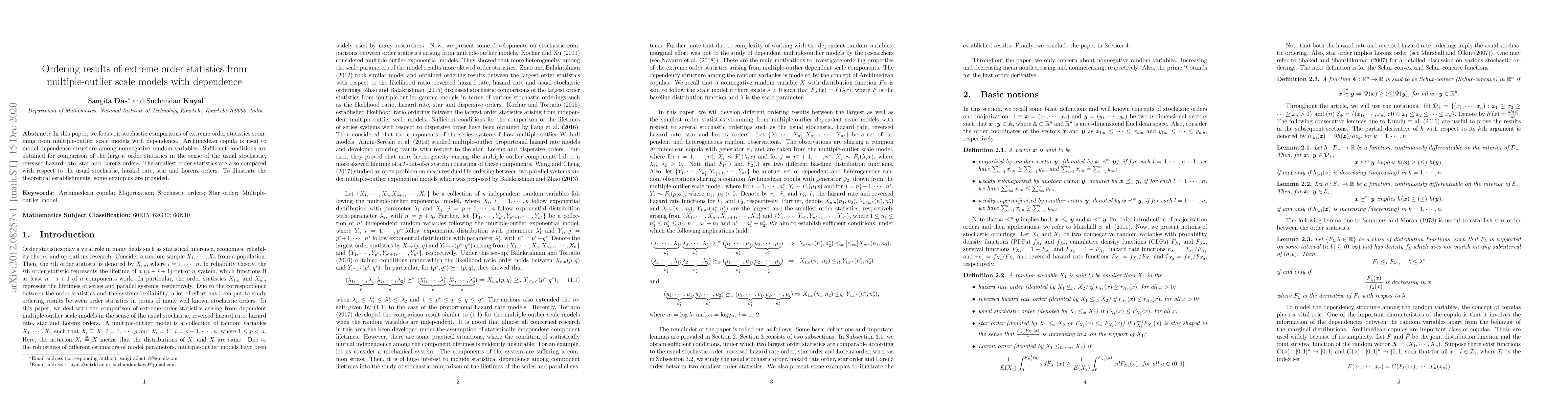 Provides a novel approach to comparing order statistics from multiple-outlier models with dependence, which has not been explored in previous research