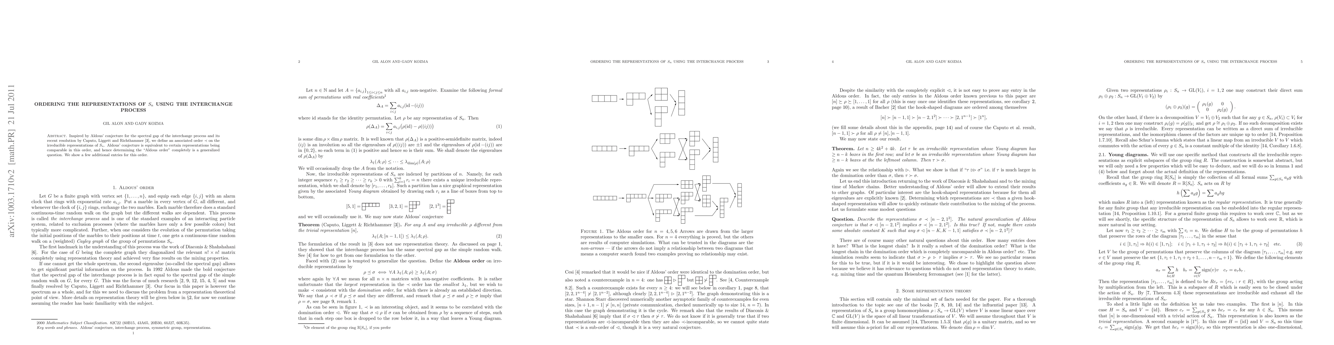 Researchers define an order on S_n representations based on the interchange process, building on Aldous' conjecture, to understand group irreducibility.