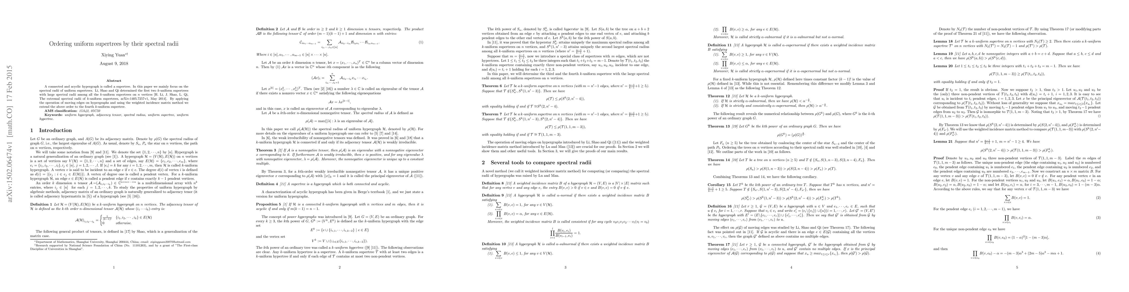This paper extends the order of $k$-uniform supertrees by their spectral radii, focusing on the first four supertrees with the largest spectral radii among all $k$-uniform supertrees on $n$ vertices. The authors utilize edge-moving operations and the weighted incidence matrix method to achieve this extension.
