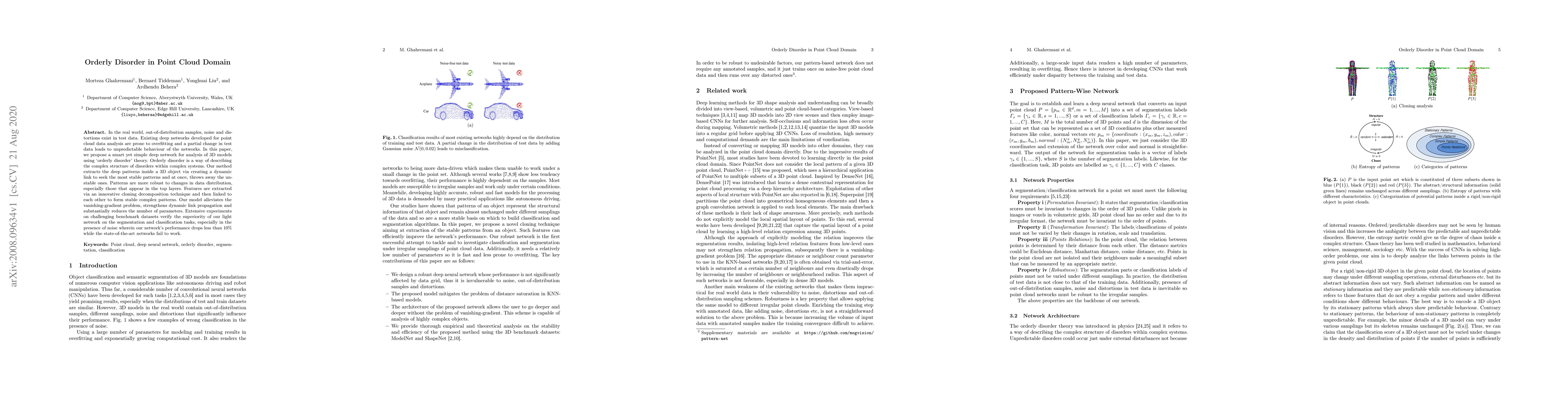 In the real world, out-of-distribution samples, noise and distortions exist in test data. Existing deep networks developed for point cloud data analysis are prone to overfitting and a partial change in test data leads to unpredictable behaviour of the networks. In this paper, we propose a smart yet simple deep network for analysis of 3D models using `orderly disorder' theory. Orderly disorder is a way of describing the complex structure of disorders within complex systems. Our method extracts the deep patterns inside a 3D object via creating a dynamic link to seek the most stable patterns and at once, throws away the unstable ones. Patterns are more robust to changes in data distribution, especially those that appear in the top layers. Features are extracted via an innovative cloning decomposition technique and then linked to each other to form stable complex patterns. Our model alleviates the vanishing-gradient problem, strengthens dynamic link propagation and substantially reduces the number of parameters. Extensive experiments on challenging benchmark datasets verify the superiority of our light network on the segmentation and classification tasks, especially in the presence of noise wherein our network's performance drops less than 10% while the state-of-the-art networks fail to work.