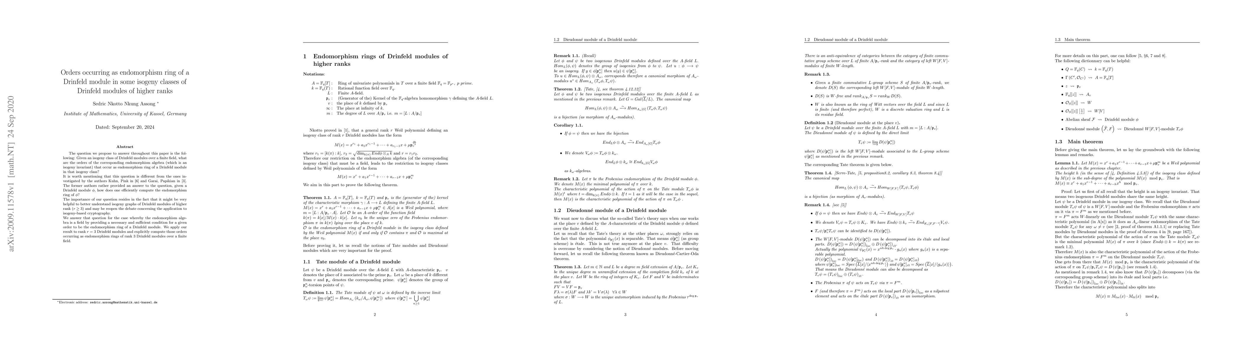 This paper investigates the orders of endomorphism algebras within isogeny classes of Drinfeld modules over finite fields, specifically focusing on determining which orders can serve as endomorphism rings for modules in these classes. The authors provide a necessary and sufficient condition for such orders and apply their findings to rank 3 Drinfeld modules, computing relevant endomorphism rings explicitly.