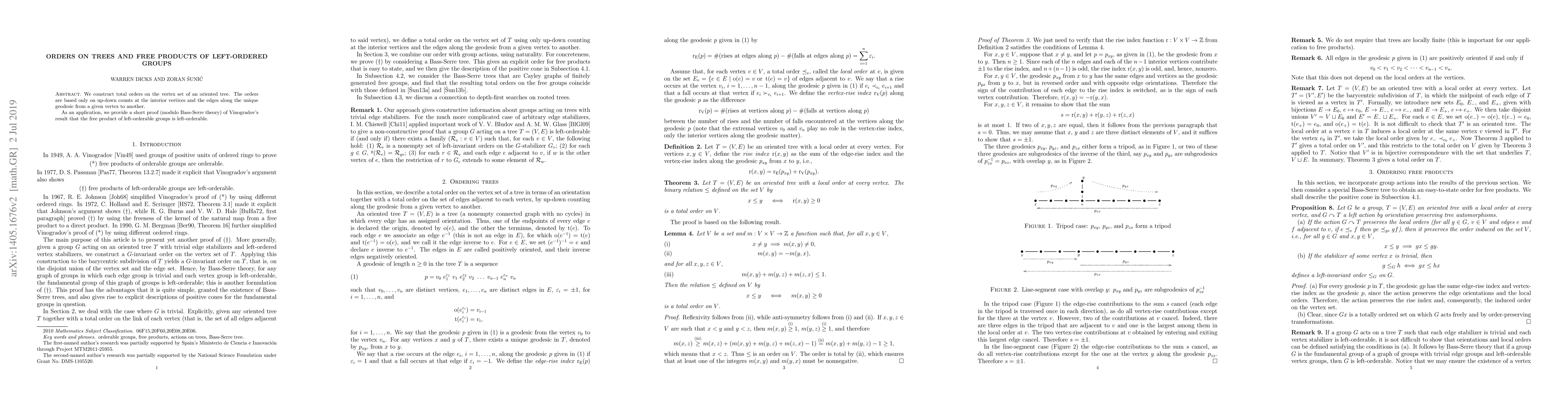 We construct total orders on the vertex set of an oriented tree. The orders are based only on up-down counts at the interior vertices and the edges along the unique geodesic from a given vertex to another. As an application, we provide a short proof (modulo Bass-Serre theory) of Vinogradov's result that the free product of left-orderable groups is left-orderable.