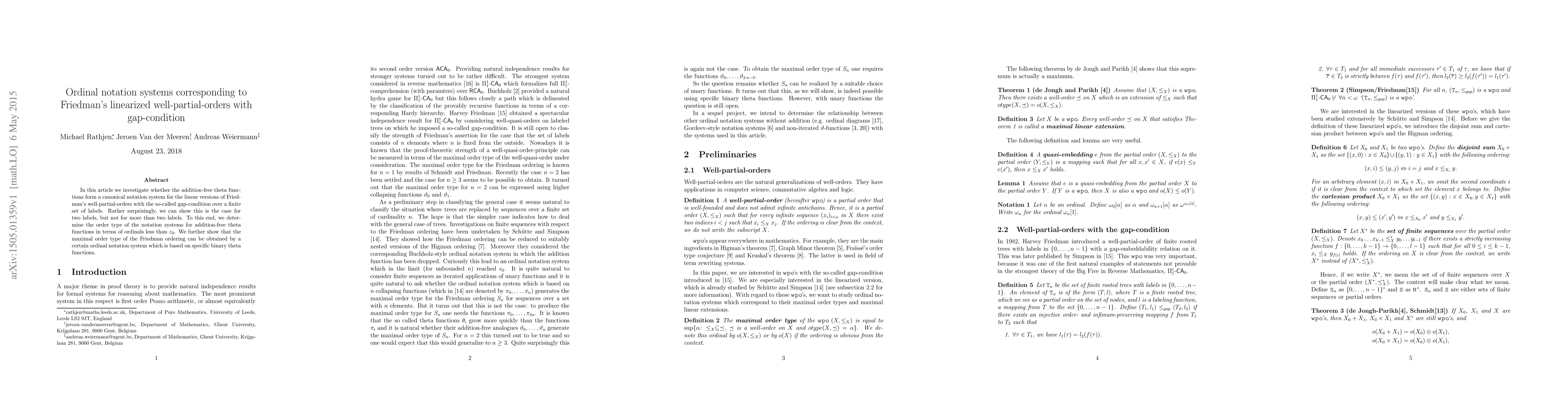 This paper explores whether addition-free theta functions serve as a canonical notation system for Friedman's linearized well-partial-orders with a gap-condition, finding they do so for two labels but not more. The study also determines the order type of these notation systems in terms of ordinals less than $\varepsilon_0$.