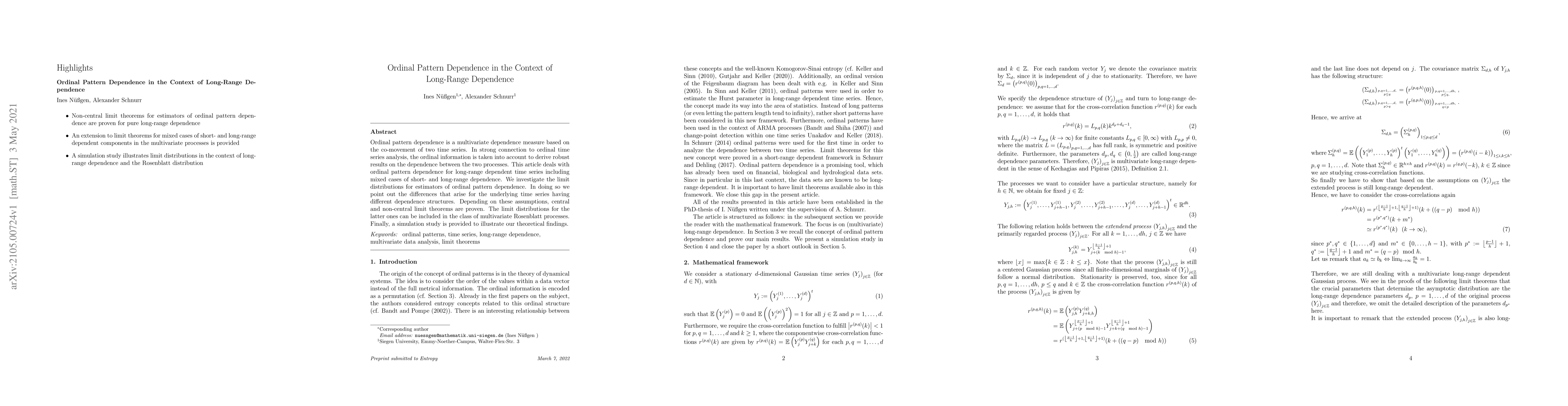 This paper investigates ordinal pattern dependence in multivariate time series, particularly for those with long-range dependence, including mixed short- and long-range cases. It derives limit distributions for estimators and demonstrates the impact of different time series dependence structures through central and non-central limit theorems, concluding with a simulation study to validate the theoretical results.