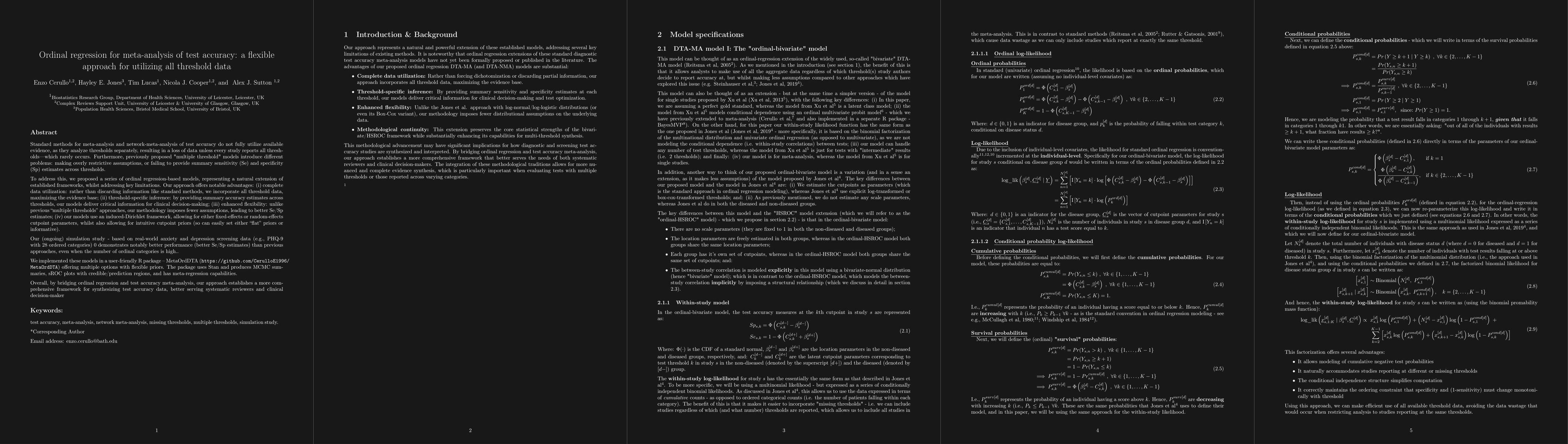 The research proposes ordinal regression-based models as a flexible approach for meta-analysis of test accuracy, utilizing all available threshold data and offering enhanced flexibility compared to previous methods.