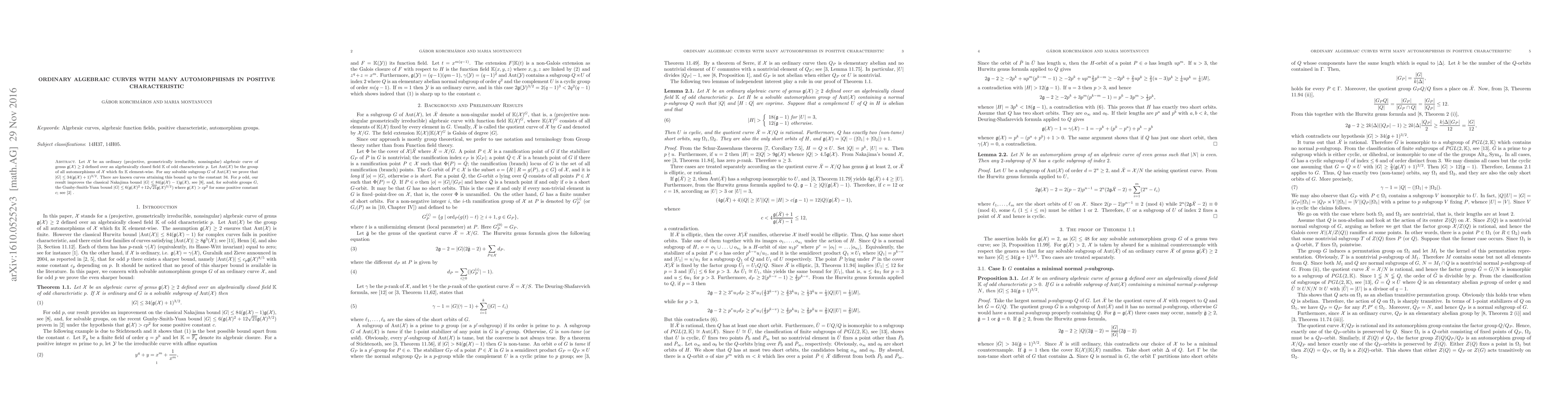 The research employs algebraic geometry techniques, focusing on ordinary algebraic curves in positive characteristic, and uses group theory to analyze automorphisms.