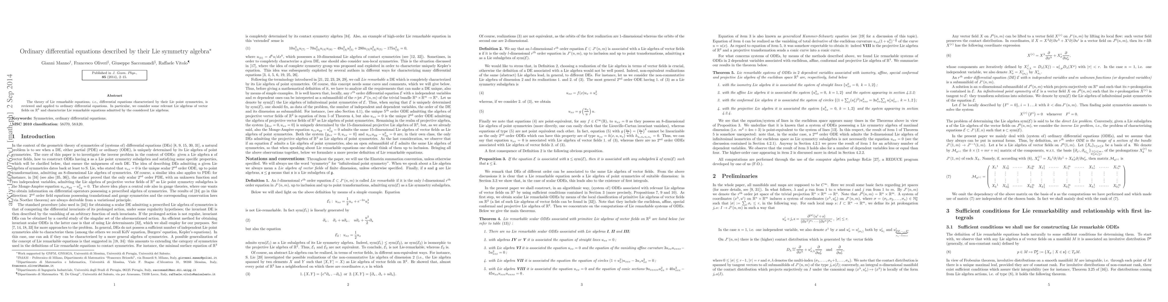 This paper reviews the theory of Lie symmetry algebra in ordinary differential equations and explores how specific Lie algebras of vector fields on $\mathbb{R}^k$ characterize the differential equations that exhibit these symmetries.