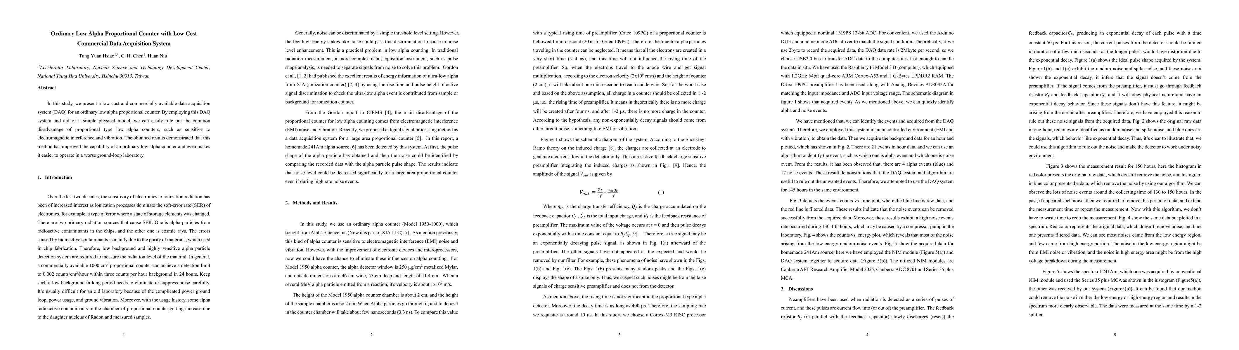 In this study, we present a low cost and commercially available data acquisition system (DAQ) for an ordinary low alpha proportional counter. By employing this DAQ system and aid of a simple physical model, we can easily rule out the common disadvantage of proportional type low alpha counters, such as sensitive to electromagnetic interference and vibration. The obtained results demonstrated that this method has improved the capability of an ordinary low alpha counter and even makes it easier to operate in a worse ground-loop laboratory.