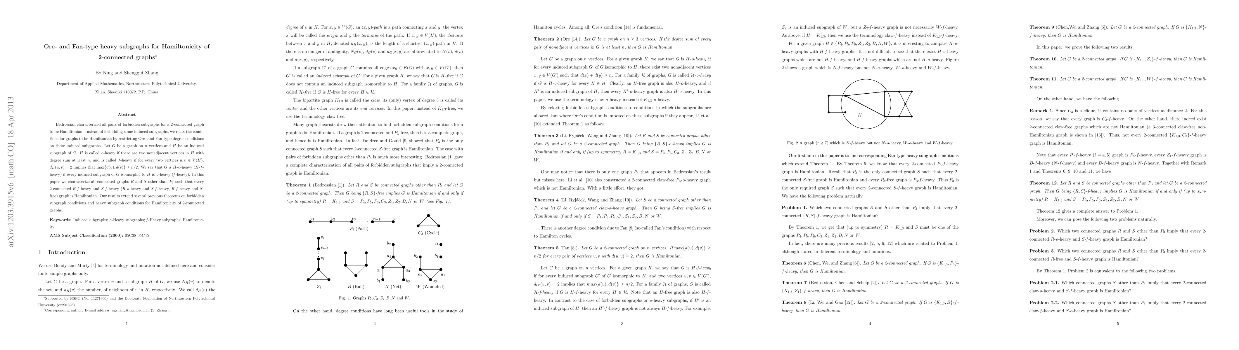 This paper characterizes specific Ore- and Fan-type heavy subgraphs that guarantee the Hamiltonicity of 2-connected graphs, replacing traditional forbidden subgraph conditions. It determines which connected graphs \( R \) and \( S \) ensure that any 2-connected graph free of \( R \)-heavy and \( S \)-heavy subgraphs, or combinations thereof, is Hamiltonian.