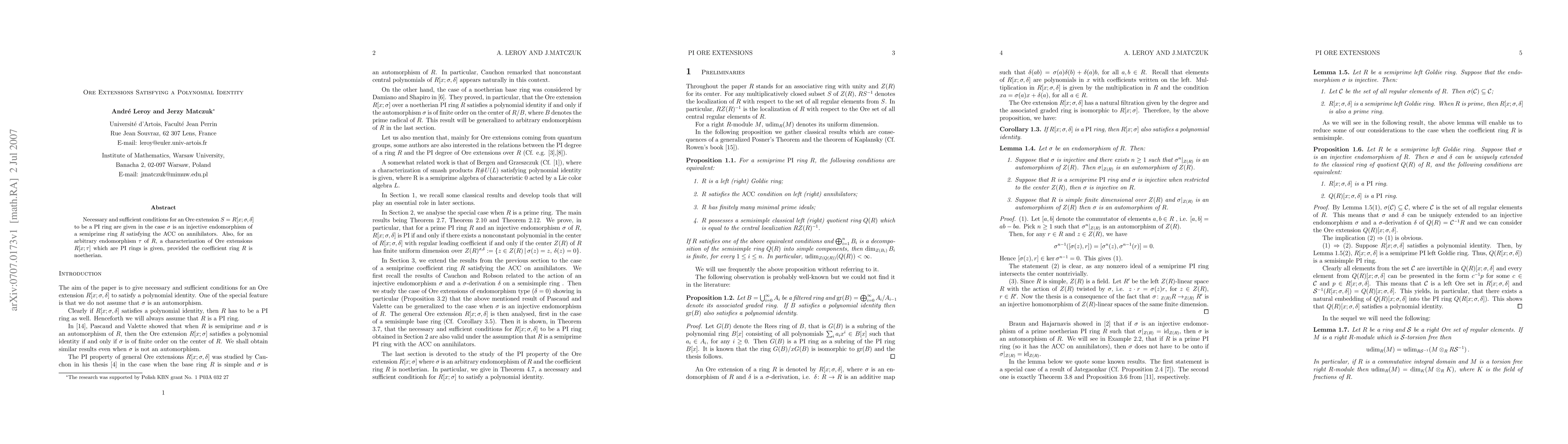 This paper provides conditions for Ore extensions $S=R[x;\sigma,\delta]$ to be PI rings when $\sigma$ is an injective endomorphism of a semiprime ring $R$ with the ACC on annihilators. It also characterizes PI Ore extensions $R[x;\tau]$ for arbitrary endomorphisms $\tau$ of a noetherian coefficient ring $R$.