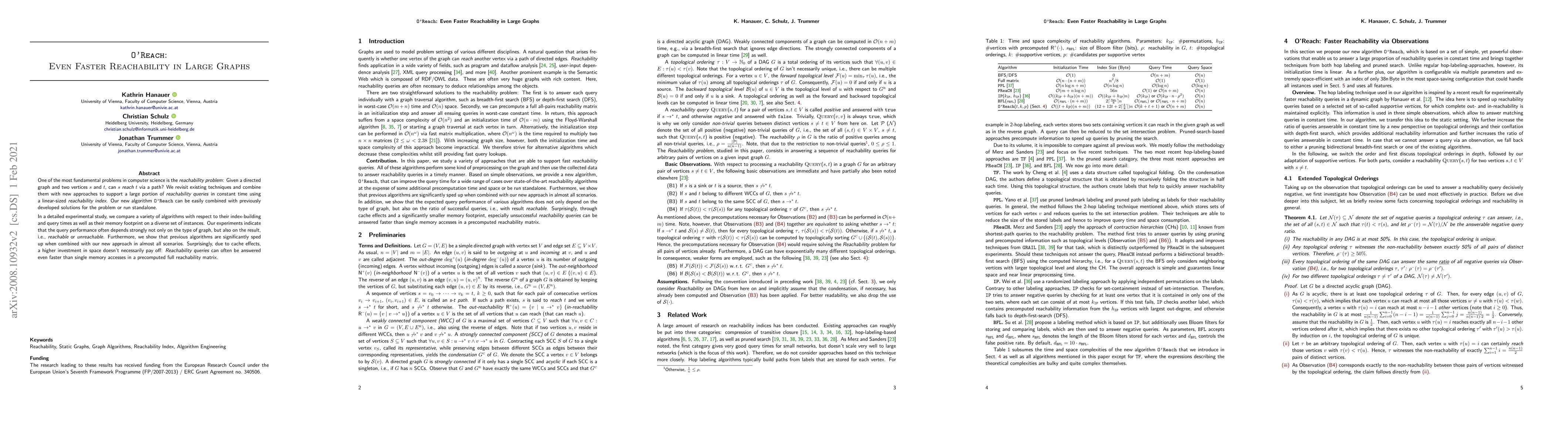 Researchers developed O'Reach, an algorithm that improves reachability queries in large graphs by combining existing techniques with new approaches, achieving constant time query performance using a linear-sized index.