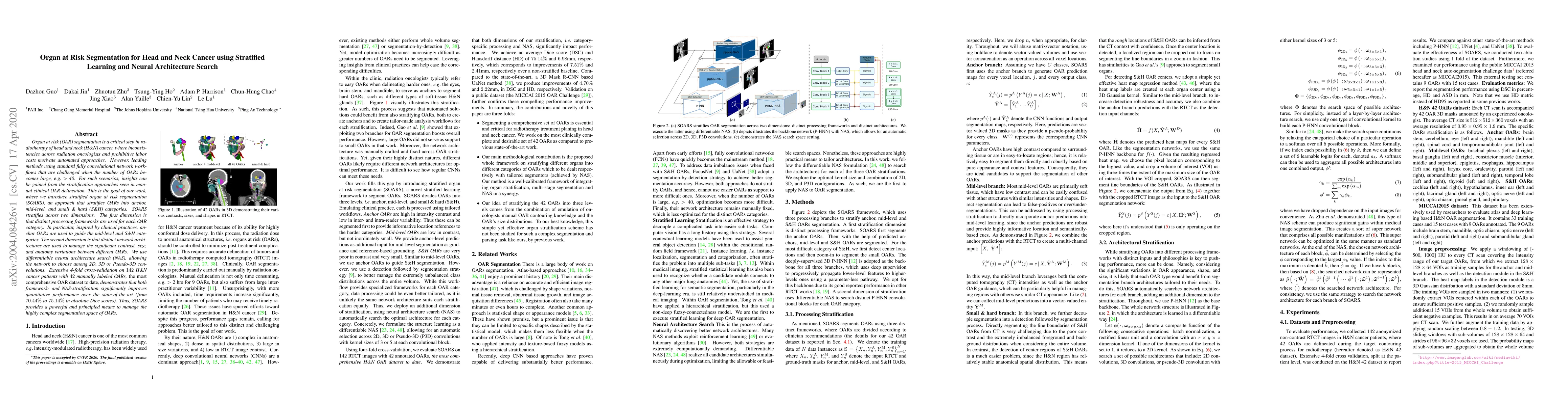 OAR segmentation is a critical step in radiotherapy of head and neck (H&N) cancer, where inconsistencies across radiation oncologists and prohibitive labor costs motivate automated approaches. However, leading methods using standard fully convolutional network workflows that are challenged when the number of OARs becomes large, e.g. > 40. For such scenarios, insights can be gained from the stratification approaches seen in manual clinical OAR delineation. This is the goal of our work, where we introduce stratified organ at risk segmentation (SOARS), an approach that stratifies OARs into anchor, mid-level, and small & hard (S&H) categories. SOARS stratifies across two dimensions. The first dimension is that distinct processing pipelines are used for each OAR category. In particular, inspired by clinical practices, anchor OARs are used to guide the mid-level and S&H categories. The second dimension is that distinct network architectures are used to manage the significant contrast, size, and anatomy variations between different OARs. We use differentiable neural architecture search (NAS), allowing the network to choose among 2D, 3D or Pseudo-3D convolutions. Extensive 4-fold cross-validation on 142 H&N cancer patients with 42 manually labeled OARs, the most comprehensive OAR dataset to date, demonstrates that both pipeline- and NAS-stratification significantly improves quantitative performance over the state-of-the-art (from 69.52% to 73.68% in absolute Dice scores). Thus, SOARS provides a powerful and principled means to manage the highly complex segmentation space of OARs.