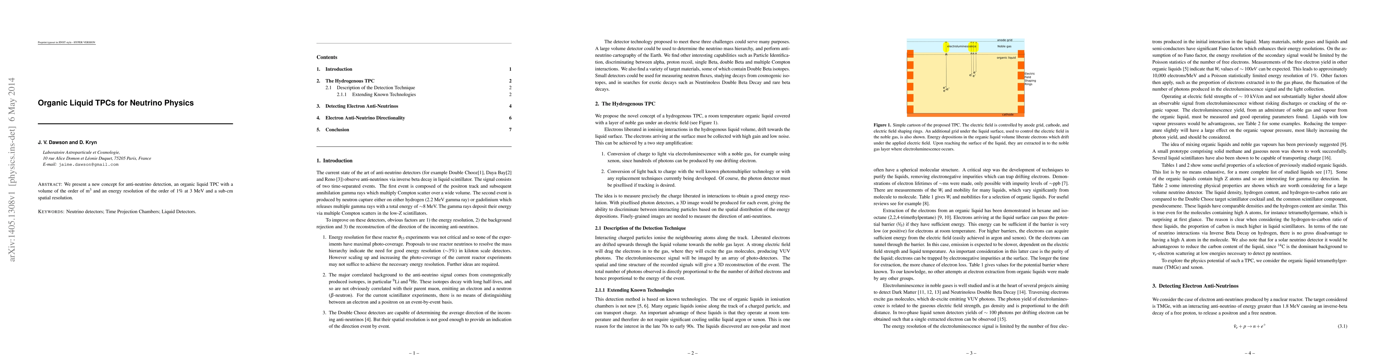 The paper introduces an innovative design for detecting anti-neutrinos using a large-scale, m³-volume organic liquid Time Projection Chamber (TPC). This TPC offers exceptional energy resolution of about 1% at 3 MeV and sub-centimeter spatial precision, marking a significant advancement in neutrino physics detection technology.