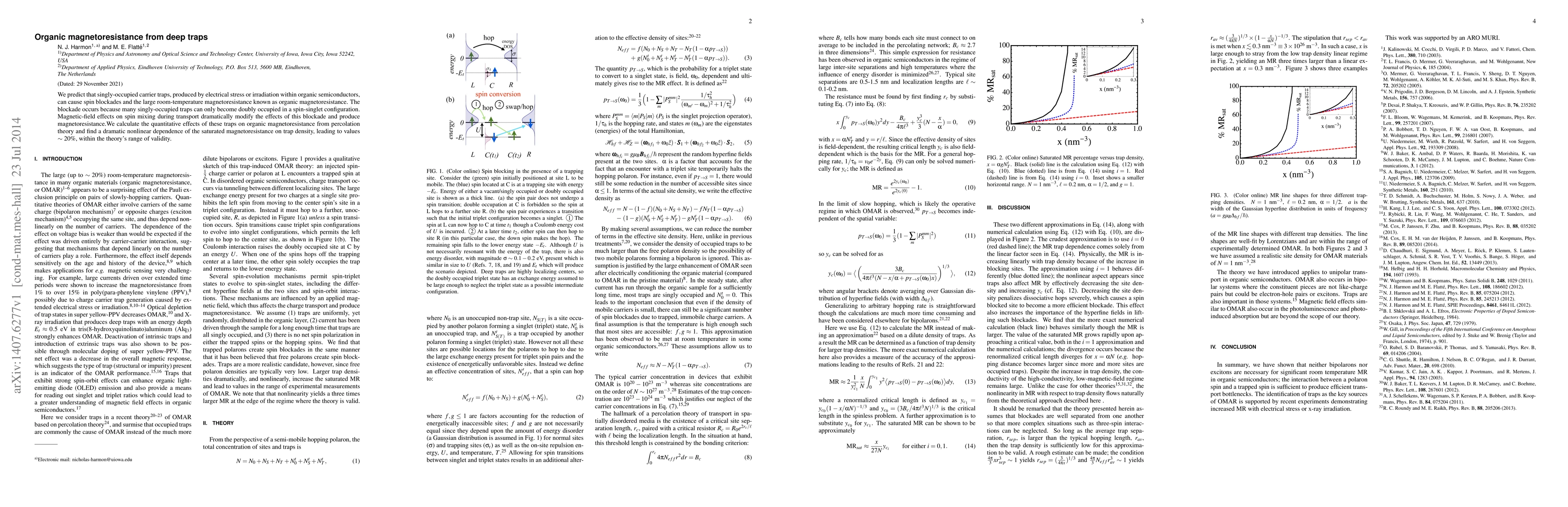 This paper predicts that deep traps in organic semiconductors, caused by electrical stress or irradiation, induce spin blockades leading to organic magnetoresistance. Magnetic fields affect spin mixing, significantly altering the blockade effect and resulting in a nonlinear dependence of magnetoresistance on trap density, achieving values up to 20%.
