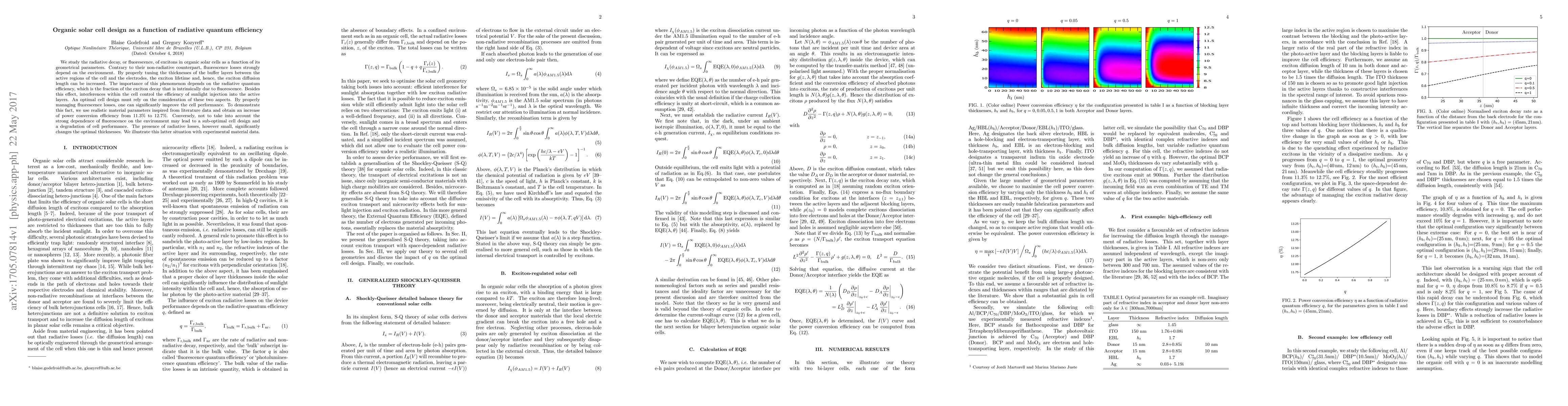 This paper investigates how the radiative quantum efficiency in organic solar cells affects their design, particularly through the manipulation of buffer layer thicknesses to enhance exciton lifetime and diffusion length. The study demonstrates that accounting for fluorescence losses can significantly boost power conversion efficiency, as shown by an increase from 11.3% to 12.7%, while neglecting these losses can lead to suboptimal designs and performance degradation.