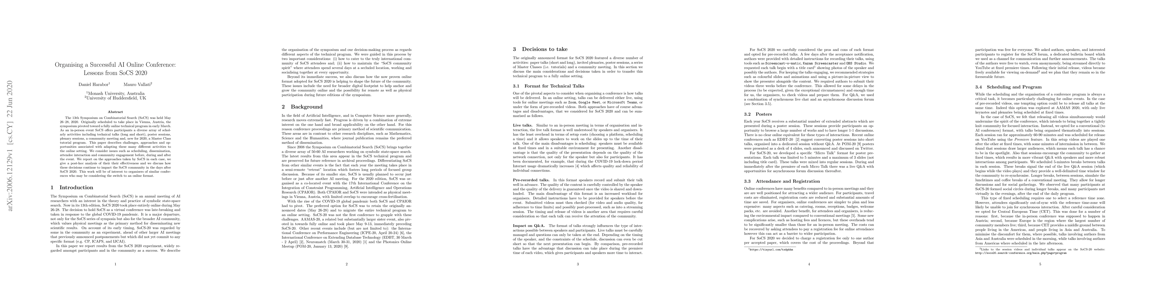 The 13th Symposium on Combinatorial Search (SoCS) was held May 26-28, 2020. Originally scheduled to take place in Vienna, Austria, the symposium pivoted toward a fully online technical program in early March. As an in-person event SoCS offers participants a diverse array of scholarly activities including technical talks (long and short), poster sessions, plenary sessions, a community meeting and, new for 2020, a Master Class tutorial program. This paper describes challenges, approaches and opportunities associated with adapting these many different activities to the online setting. We consider issues such as scheduling, dissemination, attendee interaction and community engagement before, during and after the event. We report on the approaches taken by SoCS in each case, we give a post-hoc analysis of their their effectiveness and we discuss how these decisions continue to impact the SoCS community in the days after SoCS 2020.