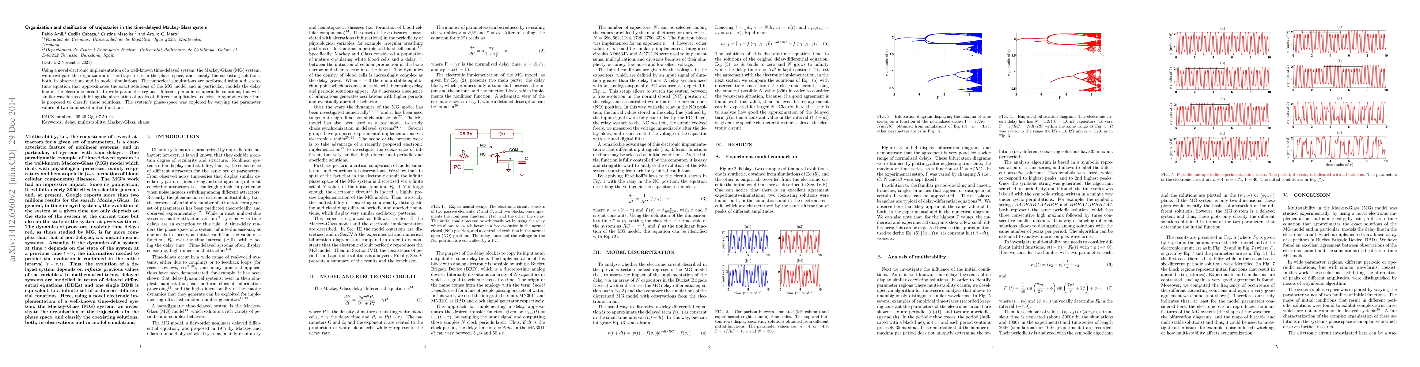 This paper explores the organization of trajectories in the time-delayed Mackey-Glass system using electronic implementation and numerical simulations. A symbolic algorithm is proposed to classify coexisting periodic and aperiodic solutions, revealing complex dynamics in wide parameter regions.