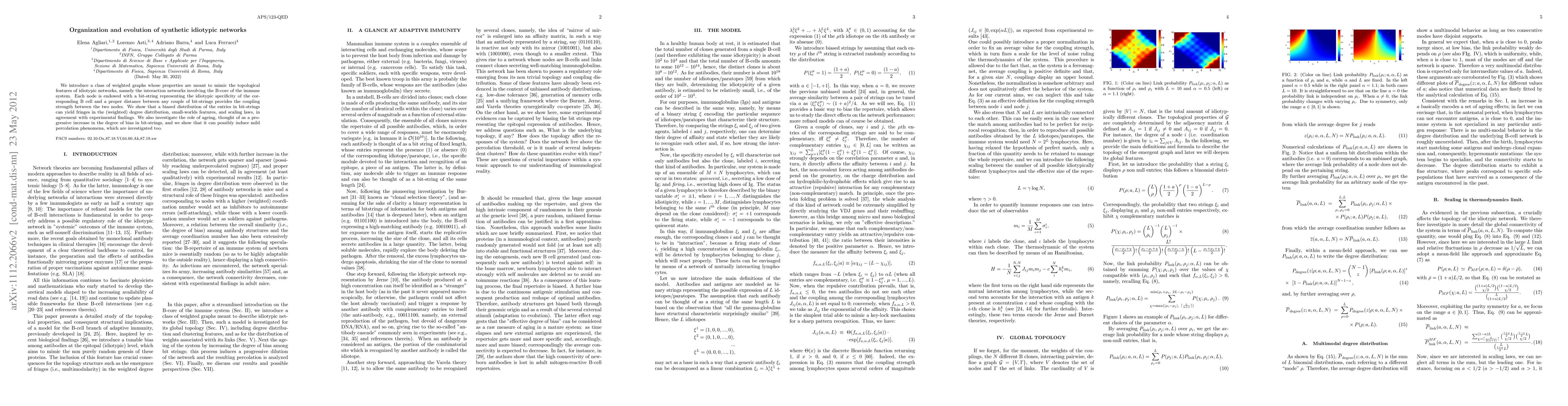 We introduce a class of weighted graphs whose properties are meant to mimic the topological features of idiotypic networks, namely the interaction networks involving the B-core of the immune system. Each node is endowed with a bit-string representing the idiotypic specificity of the corresponding B cell and a proper distance between any couple of bit-strings provides the coupling strength between the two nodes. We show that a biased distribution of the entries in bit-strings can yield fringes in the (weighted) degree distribution, small-worlds features, and scaling laws, in agreement with experimental findings. We also investigate the role of ageing, thought of as a progressive increase in the degree of bias in bit-strings, and we show that it can possibly induce mild percolation phenomena, which are investigated too.