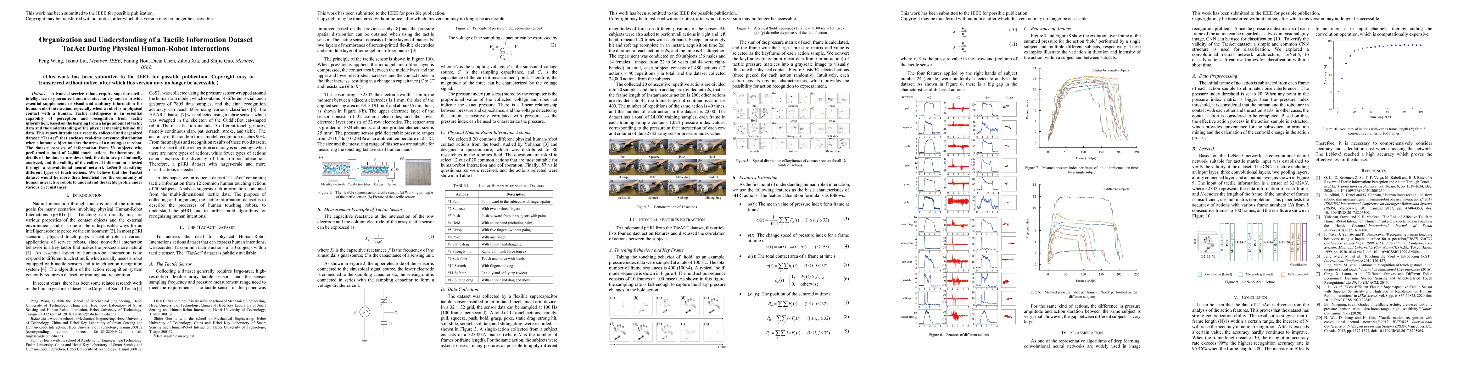 This paper introduces the "TacAct" dataset, which contains real-time pressure distribution data from 50 subjects touching a nursing-care robot's arms, totaling 24,000 touch actions. The dataset aims to enhance tactile intelligence in service robots, and its validity is tested using a convolutional neural network for classifying touch actions.