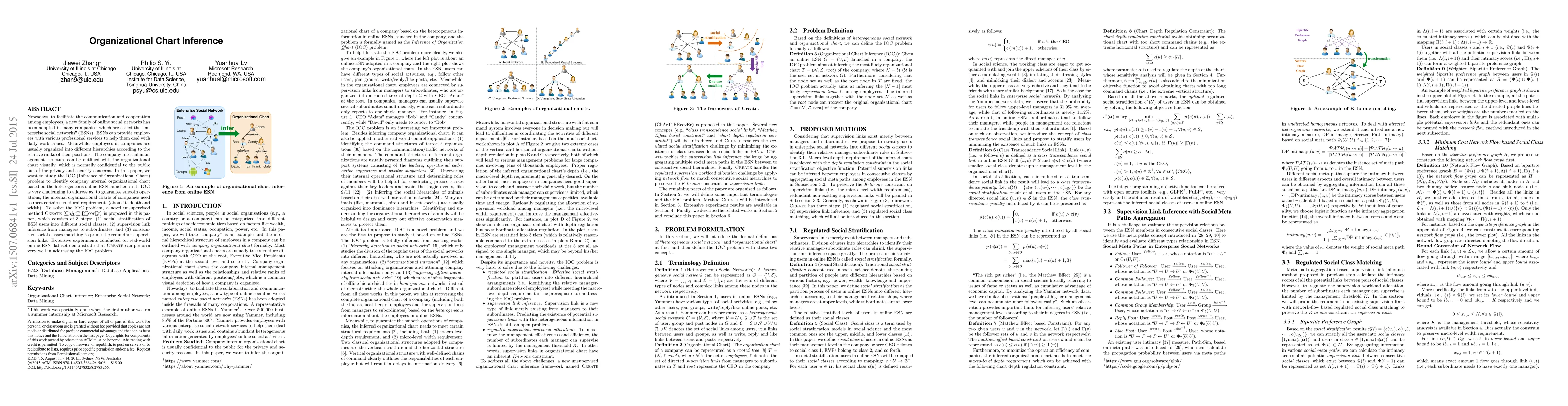 This paper proposes an unsupervised method called Create (ChArT REcovEr) to infer organizational charts from enterprise social networks (ESNs). The method involves social stratification, supervision link inference, and social classes matching, and it successfully identifies company internal organizational structures based on ESN data.