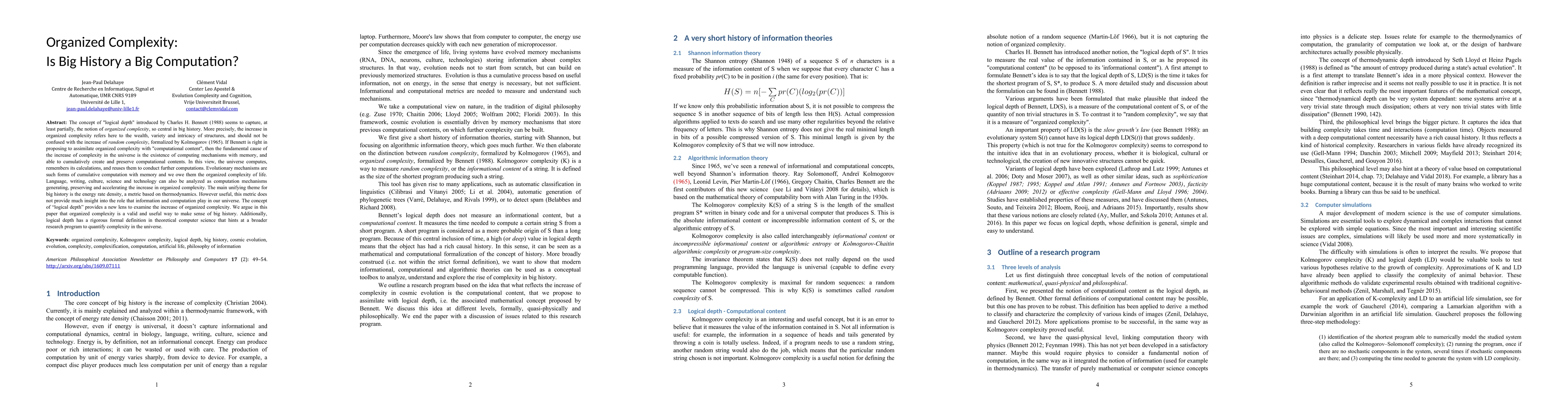 This paper explores if Big History can be understood through computational complexity theory, arguing that organized complexity is a valid framework for making sense of the universe's evolution. It proposes using 'logical depth' to quantify and understand the increase in organized complexity over time.