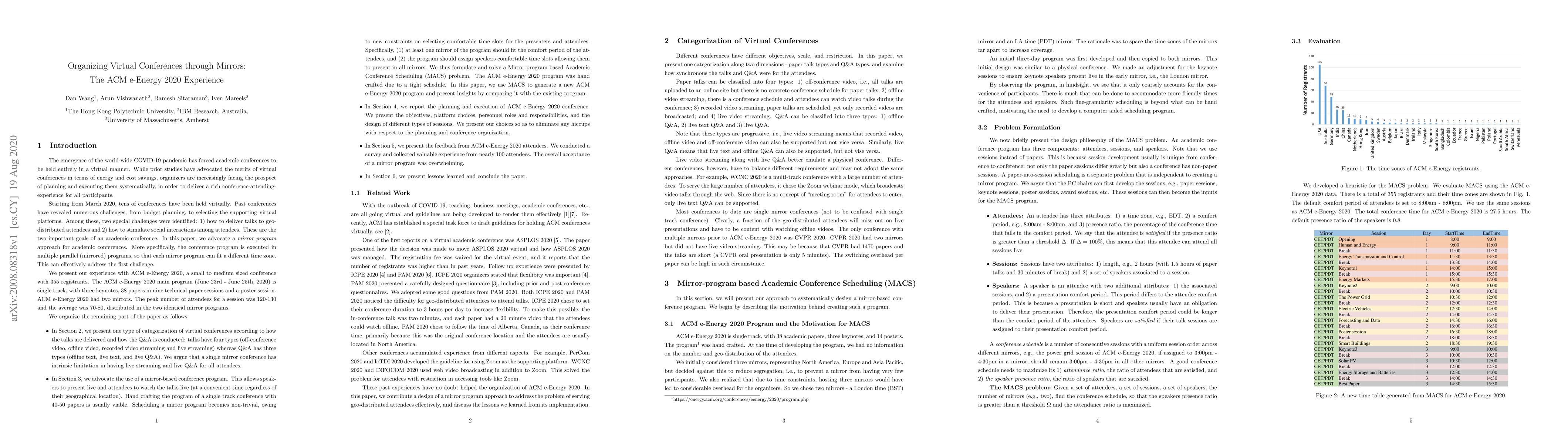 This paper discusses organizing virtual conferences during the COVID-19 pandemic, focusing on the ACM e-Energy 2020 experience. It proposes a mirrored program approach to deliver talks to geo-distributed attendees and stimulate social interactions, addressing the challenges of time zone differences and social engagement.