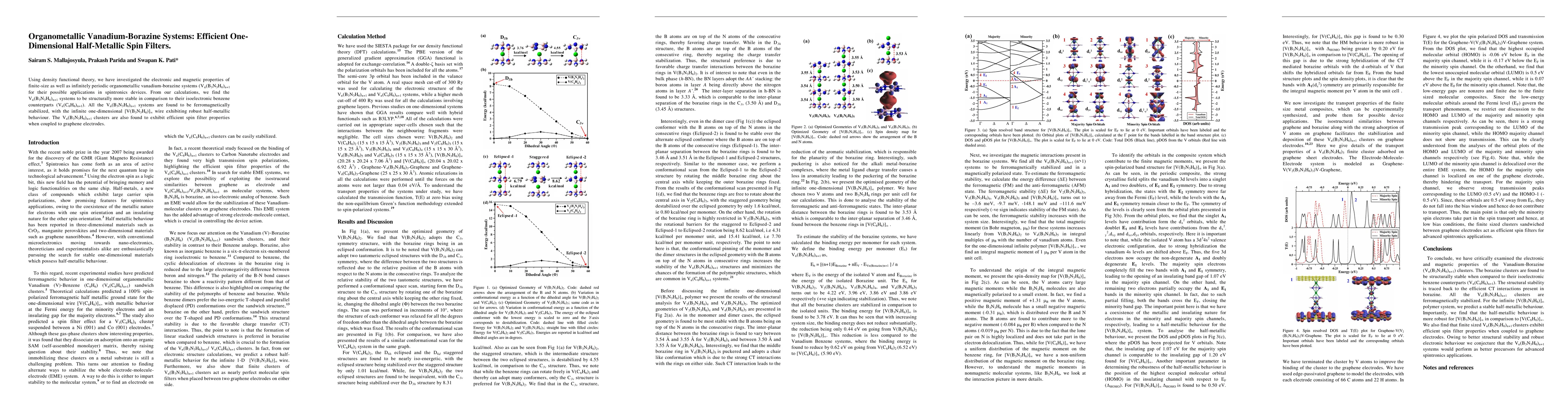 This research investigates organometallic vanadium-borazine systems using density functional theory, revealing their structural stability and ferromagnetic properties. The study finds that these systems exhibit robust half-metallic behaviour and efficient spin filter properties, making them promising candidates for spintronics applications.