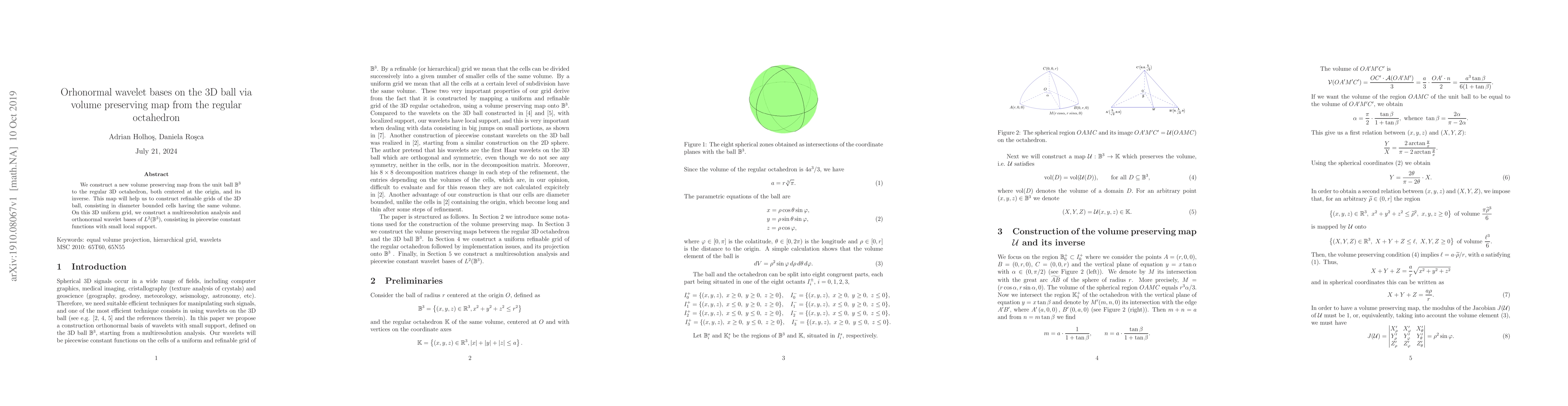 Researchers create a new map to transform 3D ball into an octahedron grid, enabling the construction of orthonormal wavelet bases with small local support. This allows for efficient analysis of functions on the 3D ball.