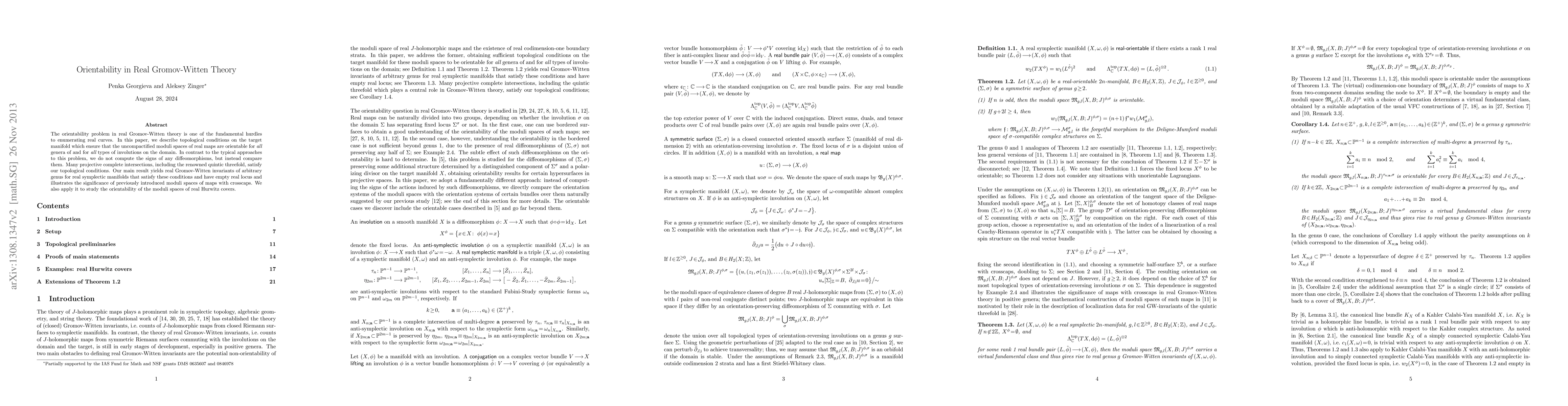 This paper addresses the orientability issue in real Gromov-Witten theory by identifying topological conditions on target manifolds that ensure orientability of uncompactified moduli spaces of real maps across all genera and involutions, without requiring computation of diffeomorphism signs. The findings apply to many projective complete intersections, notably the quintic threefold, enabling real Gromov-Witten invariants computation and insights into moduli spaces of real Hurwitz covers.
