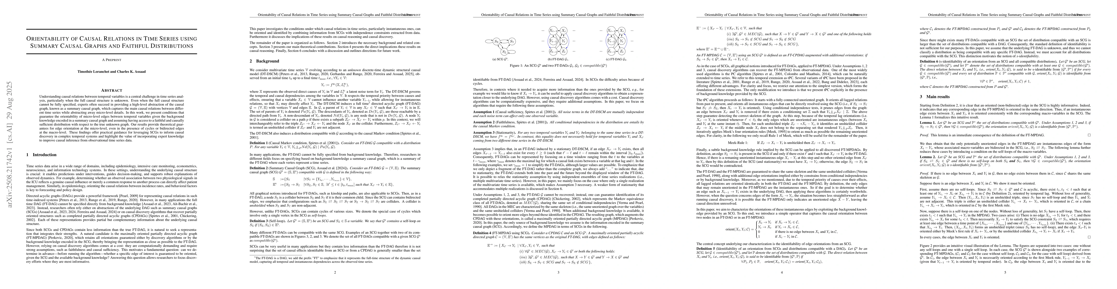 Understanding causal relations between temporal variables is a central challenge in time series analysis, particularly when the full causal structure is unknown. Even when the full causal structure cannot be fully specified, experts often succeed in providing a high-level abstraction of the causal graph, known as a summary causal graph, which captures the main causal relations between different time series while abstracting away micro-level details. In this work, we present conditions that guarantee the orientability of micro-level edges between temporal variables given the background knowledge encoded in a summary causal graph and assuming having access to a faithful and causally sufficient distribution with respect to the true unknown graph. Our results provide theoretical guarantees for edge orientation at the micro-level, even in the presence of cycles or bidirected edges at the macro-level. These findings offer practical guidance for leveraging SCGs to inform causal discovery in complex temporal systems and highlight the value of incorporating expert knowledge to improve causal inference from observational time series data.