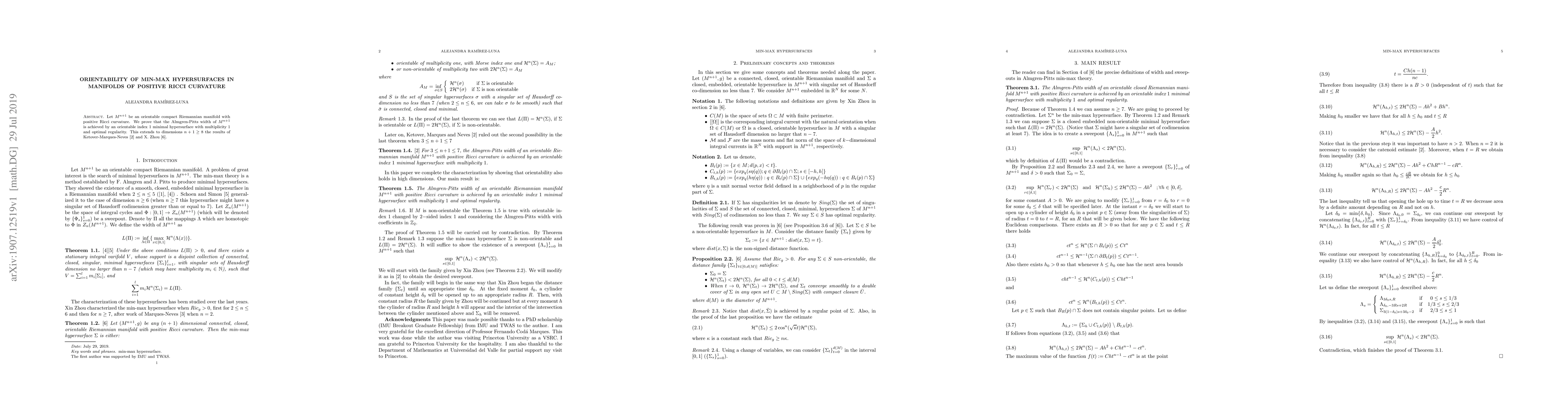 This paper proves that in manifolds with positive Ricci curvature, an orientable minimal hypersurface achieves the Almgren-Pitts width of the manifold, extending previous results to dimensions n+1 greater than or equal to 8.