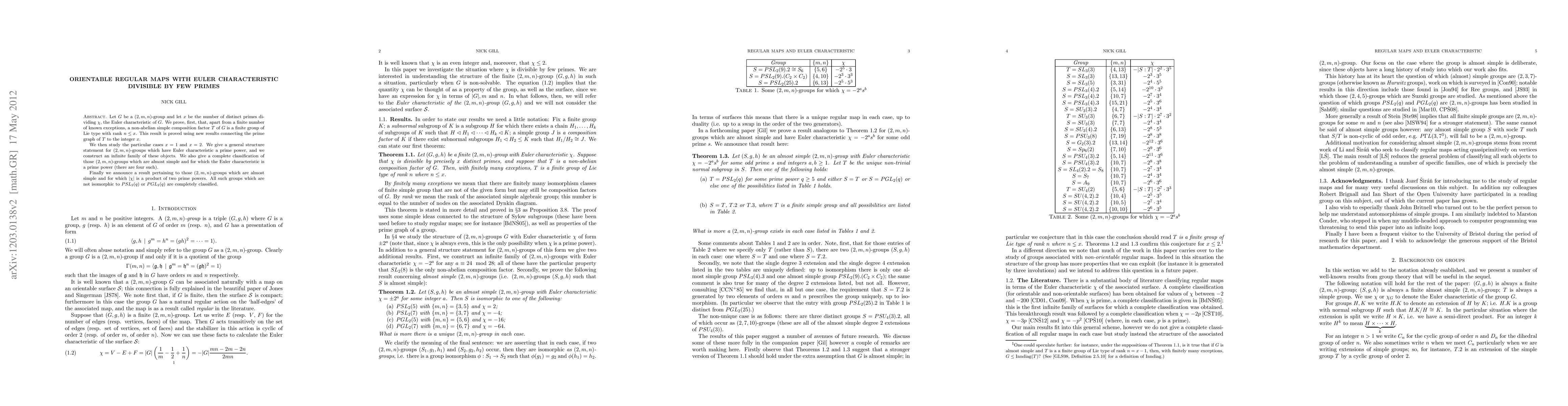 Let $G$ be a $(2,m,n)$-group and let $x$ be the number of distinct primes dividing $\chi$, the Euler characteristic of $G$. We prove, first, that, apart from a finite number of known exceptions, a non-abelian simple composition factor $T$ of $G$ is a finite group of Lie type with rank $n\leq x$. This result is proved using new results connecting the prime graph of $T$ to the integer $x$. We then study the particular cases $x=1$ and $x=2$. We give a general structure statement for $(2,m,n)$-groups which have Euler characteristic a prime power, and we construct an infinite family of these objects. We also give a complete classification of those $(2,m,n)$-groups which are almost simple and for which the Euler characteristic is a prime power (there are four such). Finally we study those $(2,m,n)$-groups which are almost simple and for which the Euler characteristic is a product of two prime powers. All such groups which are not isomorphic to $PSL_2(q)$ or $PGL_2(q)$ are completely classified.