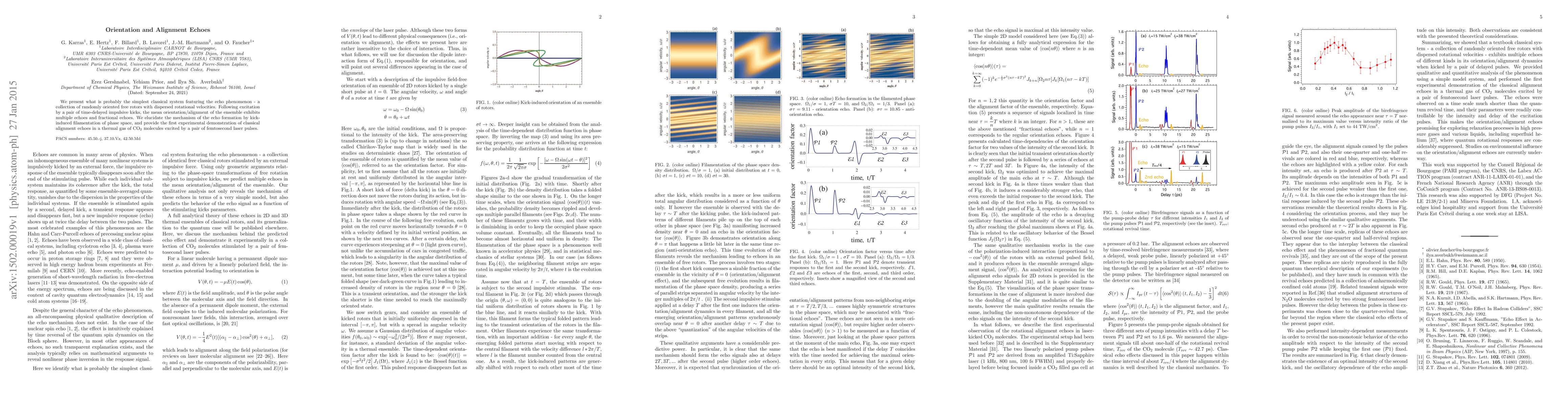 This paper demonstrates echo phenomena in a classical system of randomly oriented free rotors, showing multiple and fractional echoes after excitation by time-delayed kicks. The mechanism is explained through kick-induced filamentation of phase space, and the first experimental evidence of classical alignment echoes is provided using CO_2 molecules excited by femtosecond laser pulses.