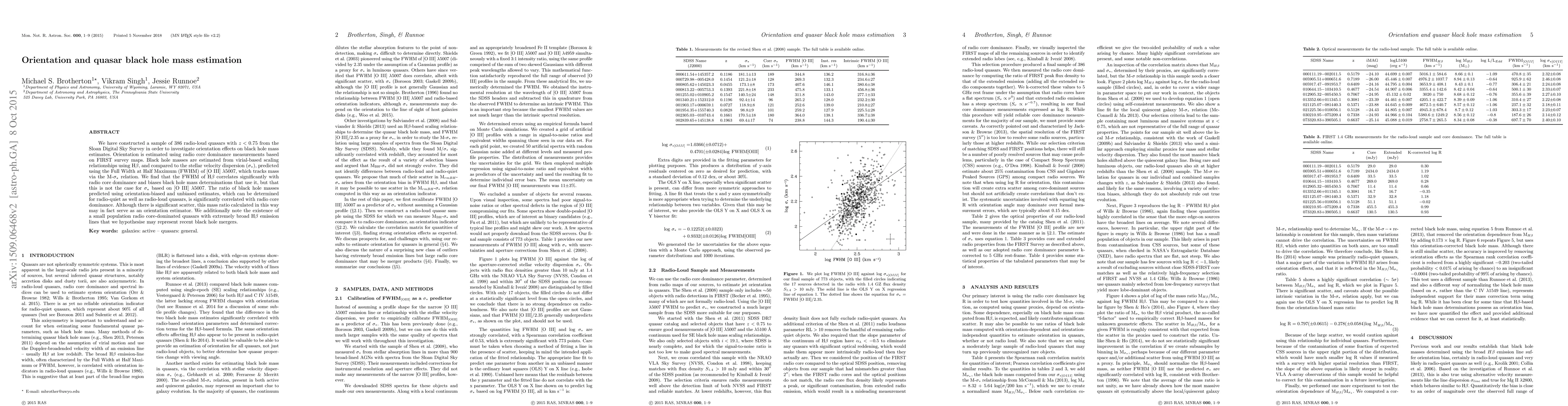 We have constructed a sample of 386 radio-loud quasars with z < 0.75 from the Sloan Digital Sky Survey in order to investigate orientation effects on black hole mass estimates. Orientation is estimated using radio core dominance measurements based on FIRST survey maps. Black hole masses are estimated from virial-based scaling relationships using H-beta, and compared to the stellar velocity dispersion (sigma_*), predicted using the Full Width at Half Maximum (FWHM) of [O III] 5007, which tracks mass via the M-sigma_* relation. We find that the FWHM of Hbeta correlates significantly with radio core dominance and biases black hole mass determinations that use it, but that this is not the case for sigma_* based on [O III] 5007. The ratio of black hole masses predicted using orientation-biased and unbiased estimates, which can be determined for radio-quiet as well as radio-loud quasars, is significantly correlated with radio core dominance. Although there is significant scatter, this mass ratio calculated in this way may in fact serve as an orientation estimator. We additionally note the existence of a small population radio core-dominated quasars with extremely broad H-beta emission lines that we hypothesise may represent recent black hole mergers.