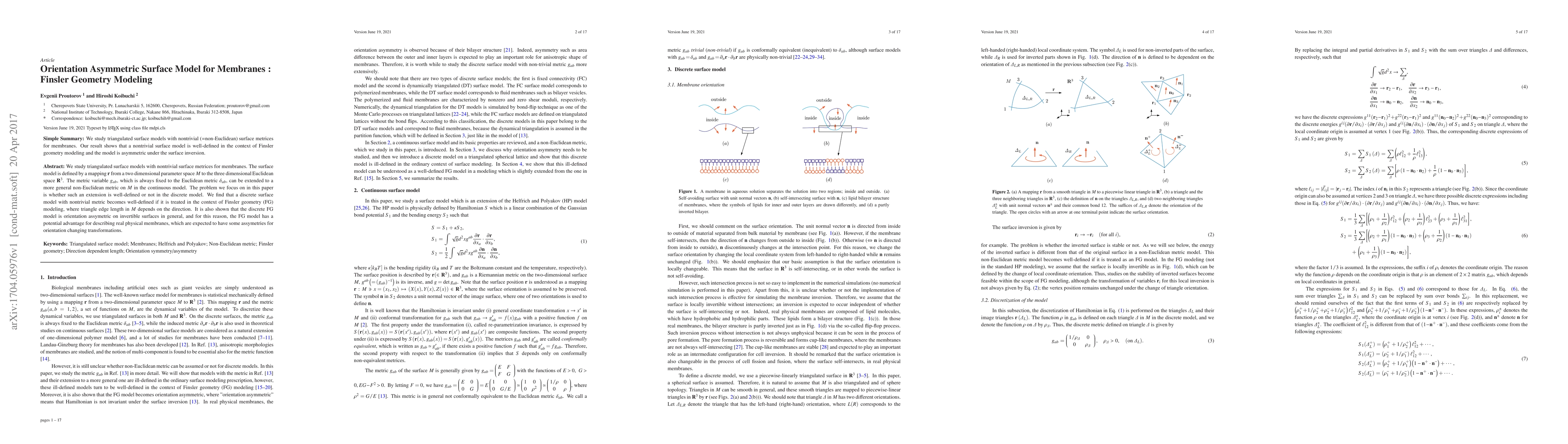 This paper explores the use of Finsler Geometry (FG) to create a well-defined discrete surface model for membranes with nontrivial metrics. It demonstrates that such models, where triangle edge lengths in the parameter space depend on direction, can be orientation asymmetric, potentially better representing real physical membranes with inherent orientation asymmetries.