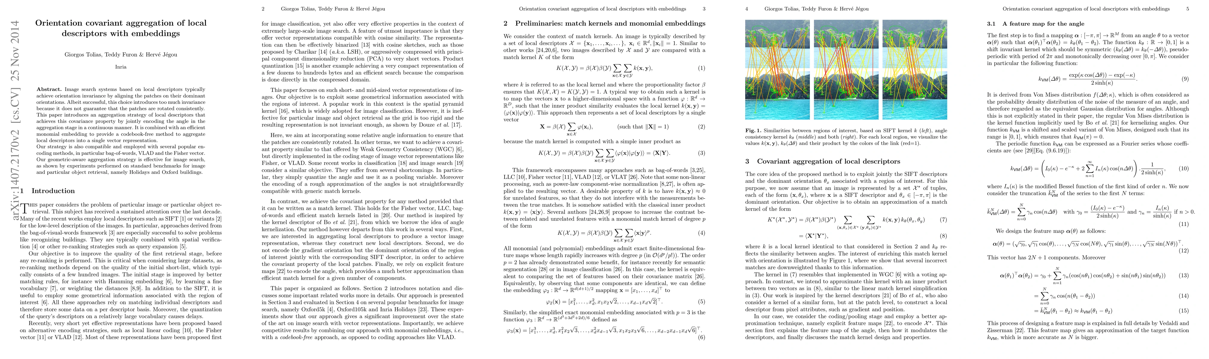 A new method for aggregating local descriptors in image search systems achieves orientation covariance by encoding angles in a continuous manner, improving consistency and effectiveness.