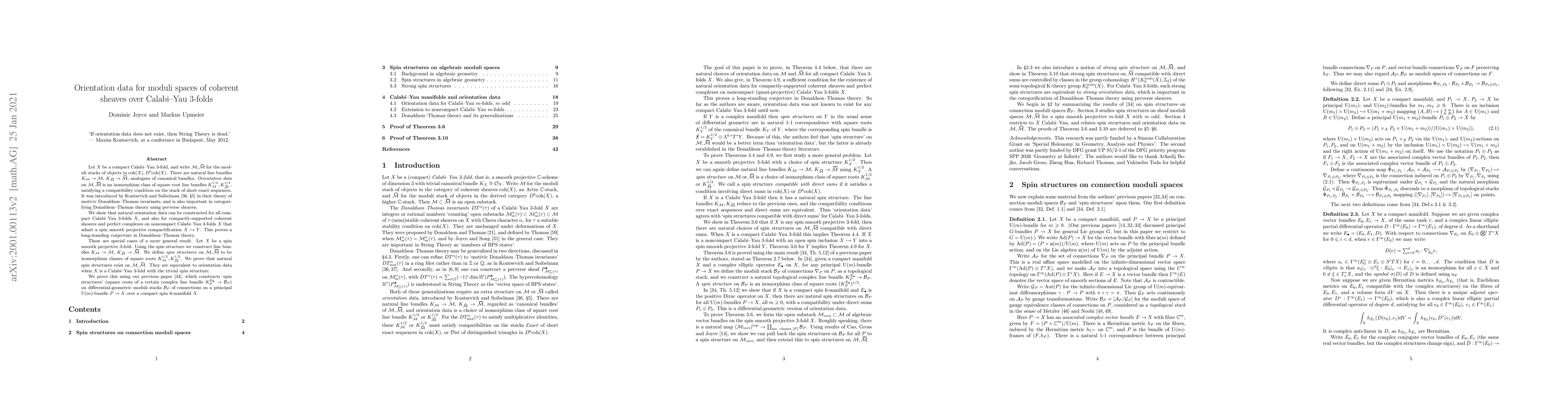 This paper constructs natural orientation data for moduli stacks of coherent sheaves over Calabi-Yau 3-folds, proving a conjecture in Donaldson-Thomas theory. It extends this to spin structures on moduli stacks for general spin smooth projective 3-folds, leveraging results from a prior study on moduli stacks of connections on principal bundles.