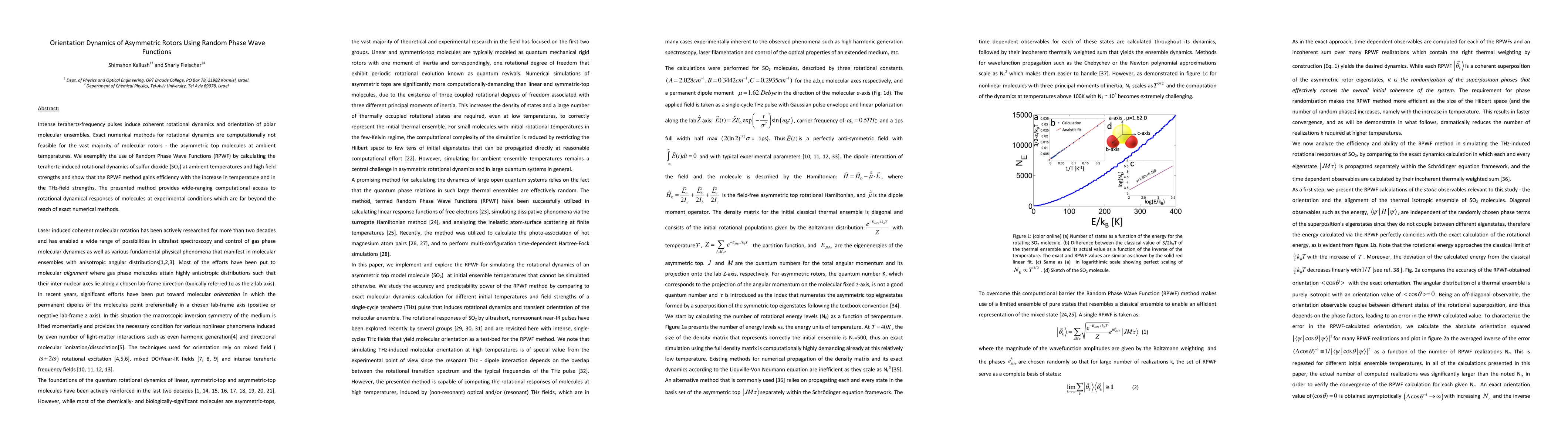 This paper explores the use of Random Phase Wave Functions (RPWF) to efficiently calculate the terahertz-induced rotational dynamics of asymmetric rotors like sulfur dioxide (SO2) at ambient temperatures. The RPWF method demonstrates significant computational efficiency, especially at higher temperatures and terahertz field strengths.