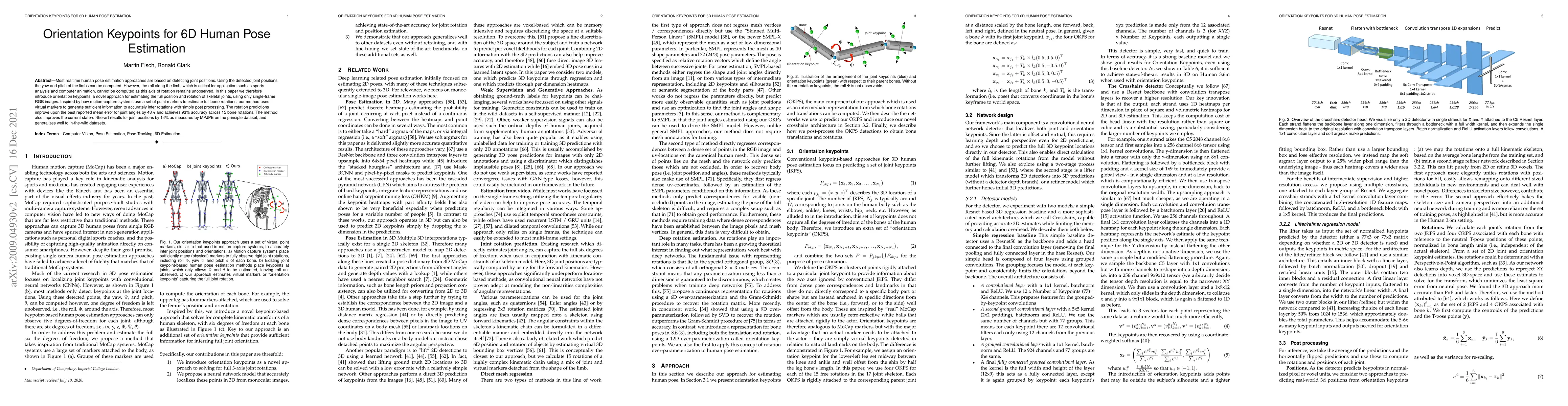 Most realtime human pose estimation approaches are based on detecting joint positions. Using the detected joint positions, the yaw and pitch of the limbs can be computed. However, the roll along the limb, which is critical for application such as sports analysis and computer animation, cannot be computed as this axis of rotation remains unobserved. In this paper we therefore introduce orientation keypoints, a novel approach for estimating the full position and rotation of skeletal joints, using only single-frame RGB images. Inspired by how motion-capture systems use a set of point markers to estimate full bone rotations, our method uses virtual markers to generate sufficient information to accurately infer rotations with simple post processing. The rotation predictions improve upon the best reported mean error for joint angles by 48% and achieves 93% accuracy across 15 bone rotations. The method also improves the current state-of-the-art results for joint positions by 14% as measured by MPJPE on the principle dataset, and generalizes well to in-the-wild datasets.