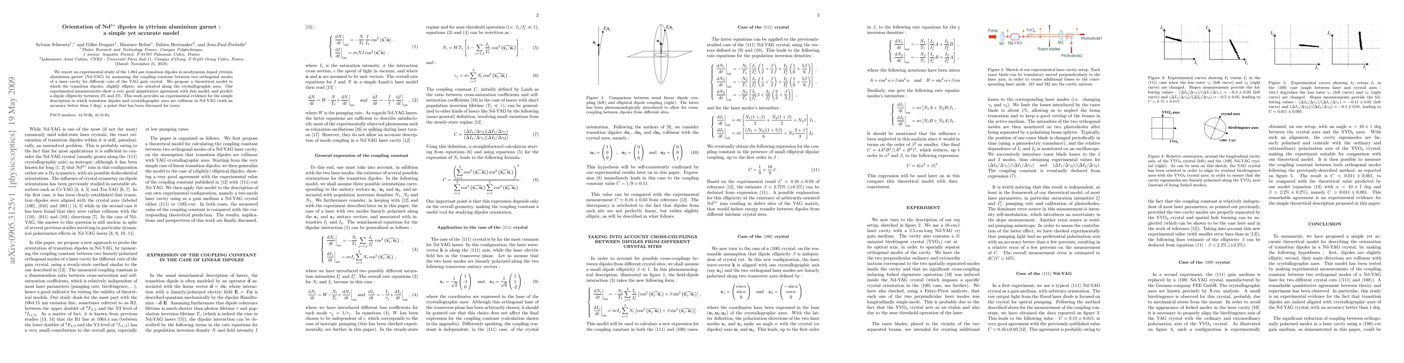 The paper presents a theoretical model and experimental validation for describing the orientation of Nd³⁺ transition dipoles in YAG crystals, taking into account slight ellipticity, which improves understanding and potential applications in laser technology.