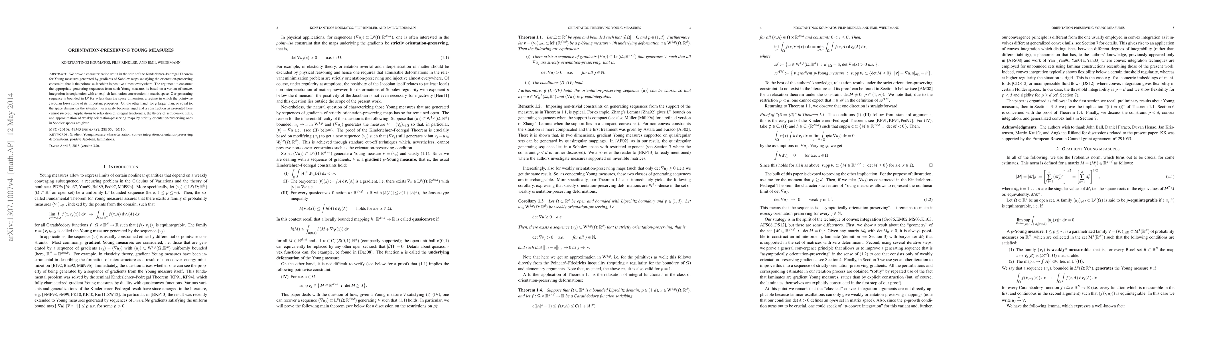 We prove a characterization result in the spirit of the Kinderlehrer-Pedregal Theorem for Young measures generated by gradients of Sobolev maps satisfying the orientation-preserving constraint, that is the pointwise Jacobian is positive almost everywhere. The argument to construct the appropriate generating sequences from such Young measures is based on a variant of convex integration in conjunction with an explicit lamination construction in matrix space. Our generating sequence is bounded in $L^p$ for $p$ less than the space dimension, a regime in which the pointwise Jacobian loses some of its important properties. On the other hand, for $p$ larger than, or equal to, the space dimension the situation necessarily becomes rigid and a construction as presented here cannot succeed. Applications to relaxation of integral functionals, the theory of semiconvex hulls, and approximation of weakly orientation-preserving maps by strictly orientation-preserving ones in Sobolev spaces are given.